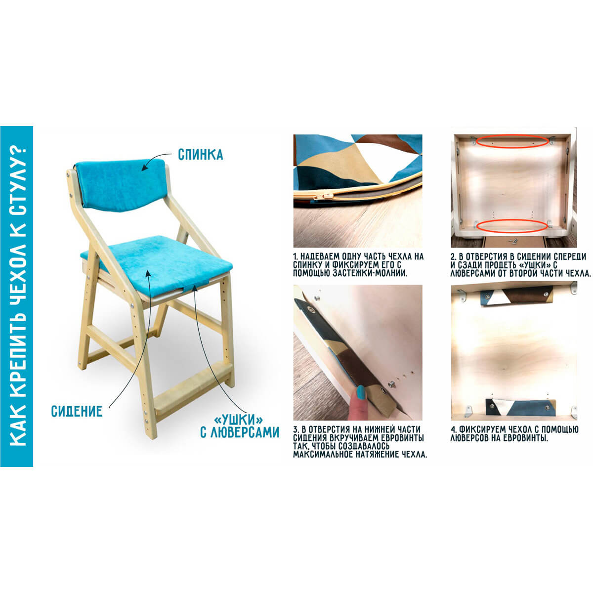Легко устанавливается и фиксируется на стуле.
