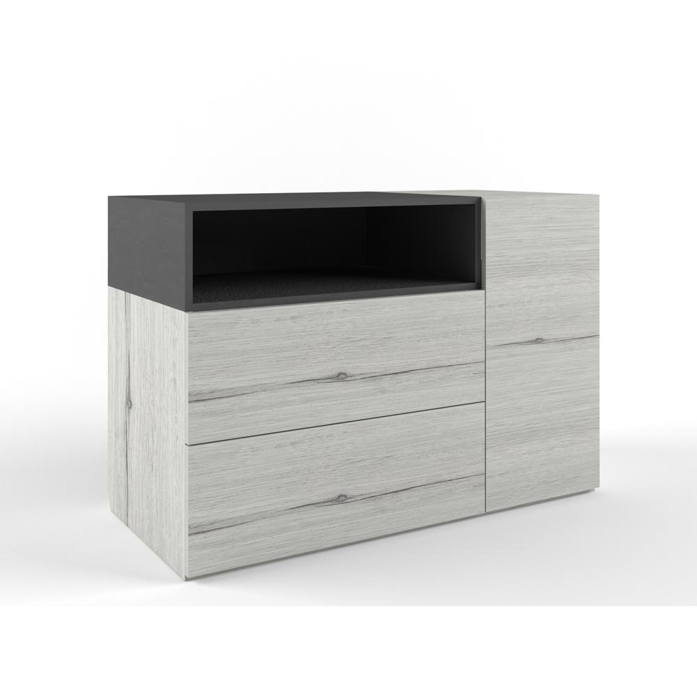 Комод предназначен для хранения вещей.Два выкатных ящика и сбоку дверца. За дверцей посередине одна полка.