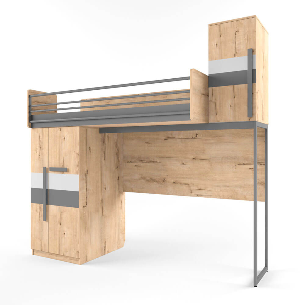 Кровать-чердак со шкафом внизу. Прочная конструкция модуля достигается за счет металлокаркаса.