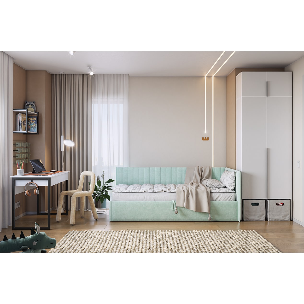 Комплектация детской: Антресоль двухдверная L800 Баско 800х349х400 мм - 1 шт Шкаф двухдверный L800 Баско 800х349х1950 мм - 1 шт Кровать с подъемным механизмом Твикс (Тахта) 90х200 см-1 шт Стол Юниор 1100х580х750 мм -1 шт Полка Юниор- 1 шт
