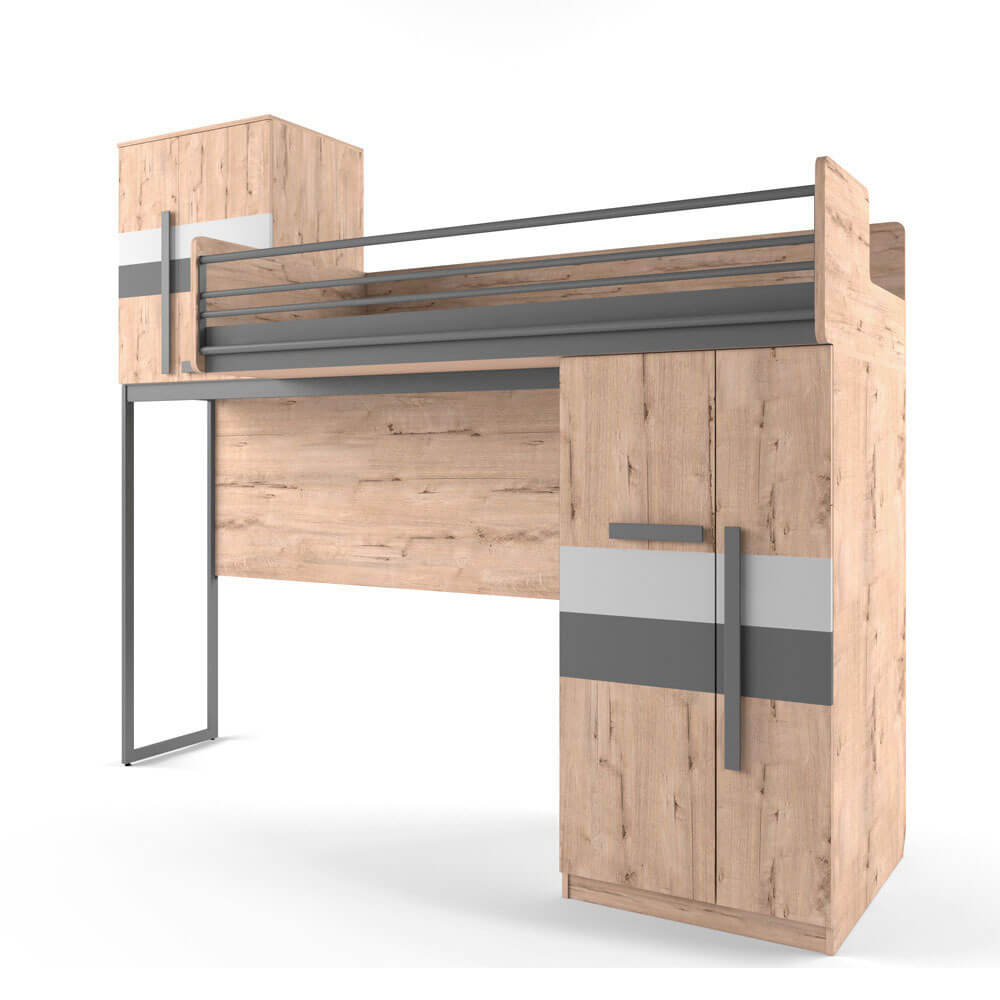 Кровать верхняя со шкафом со сплошным ограждением.Габаритный размер: 2686х872х2270 мм.