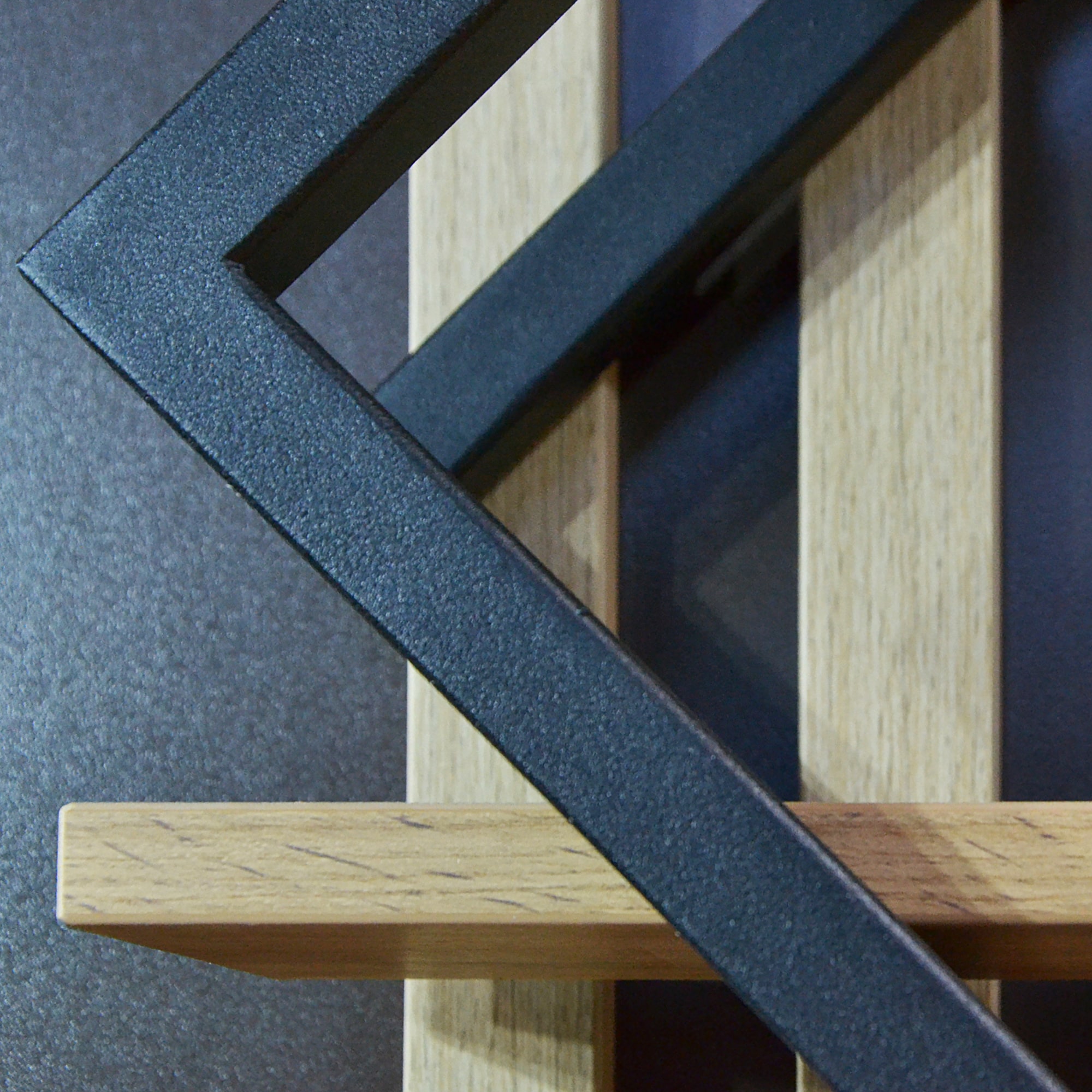 Каркас из трубы 20х20 мм, порошковое покрытие черный муар, ЛДСП 16 мм, цвет дуб белый, кромка 2мм.