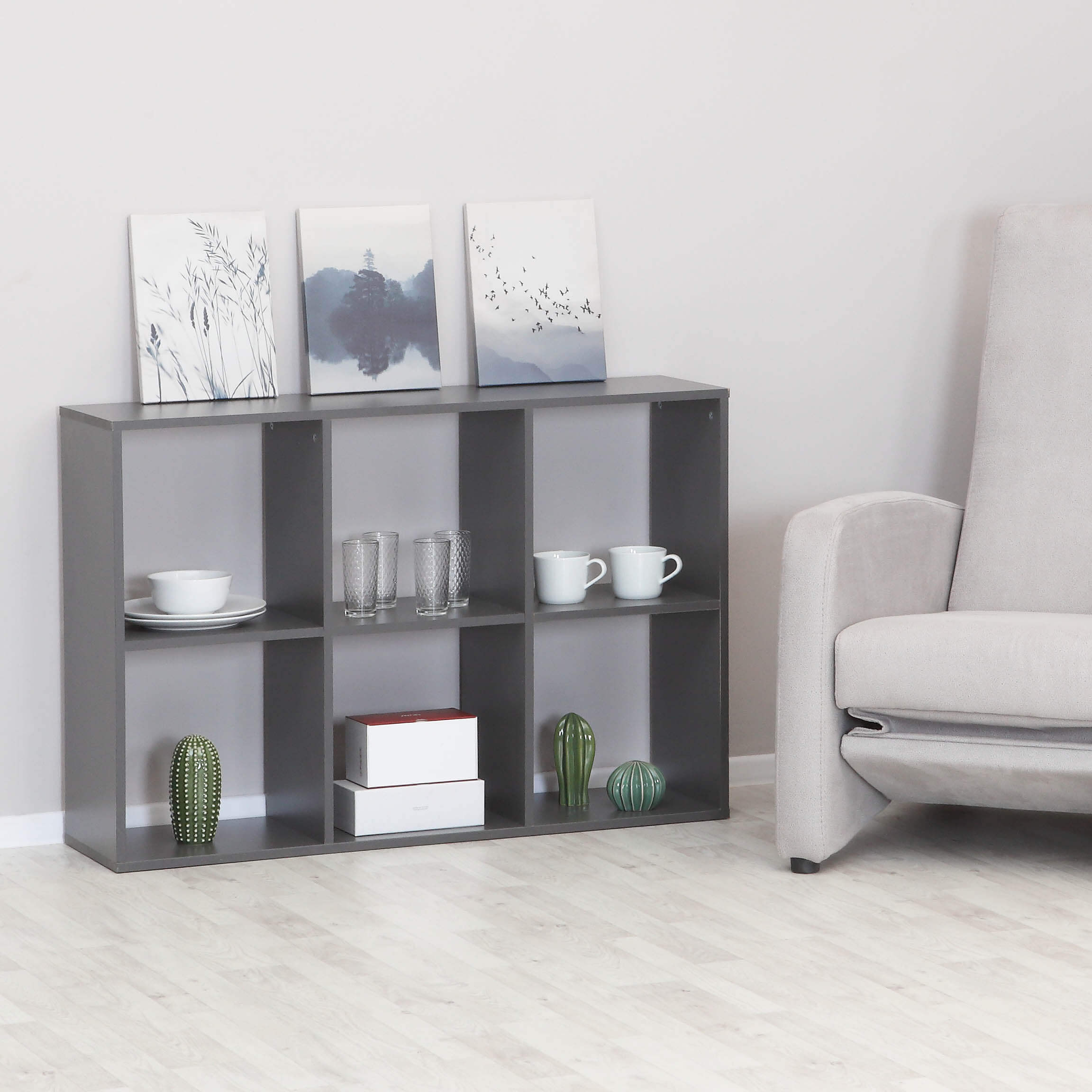 Стеллаж 6 ячеек горизонтальный Графит серый