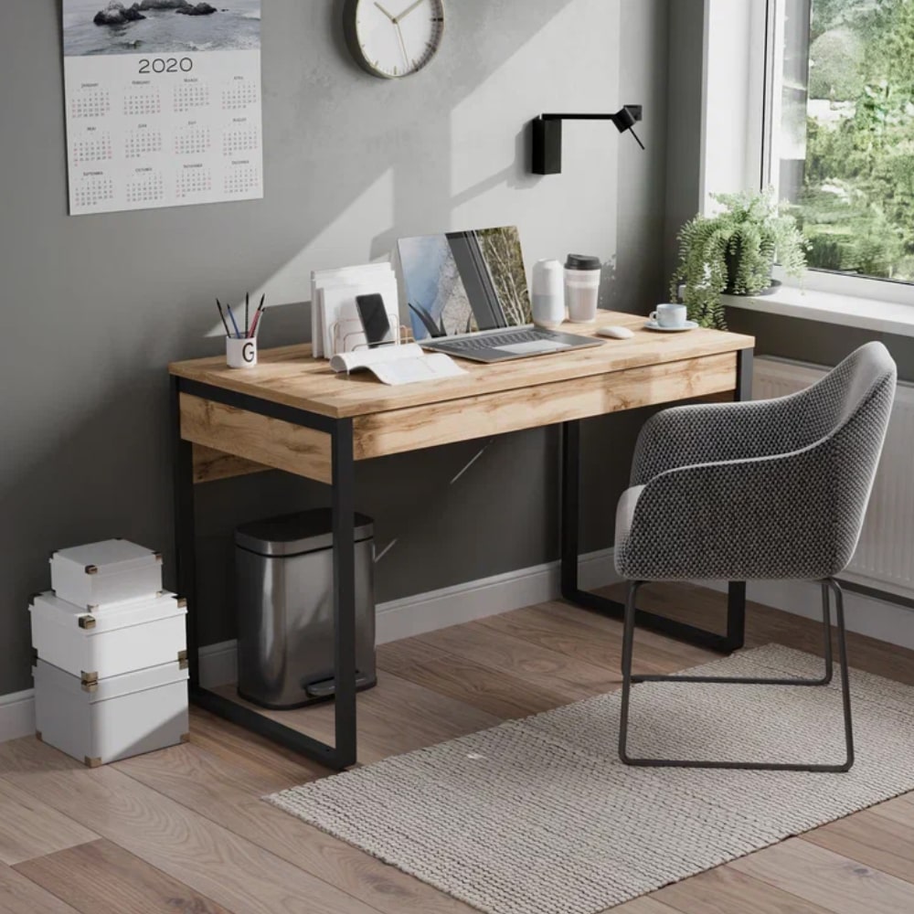 Каркас из проф. трубы 40х20 мм, покрытие черный муар, ЛДСП 16 мм дуб табачный, кромка дуб табачный, комплект направляющих 500мм.