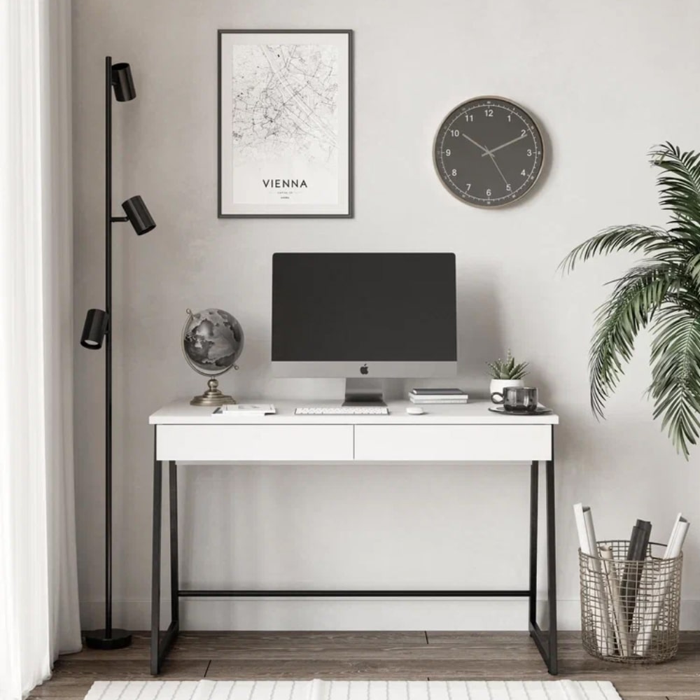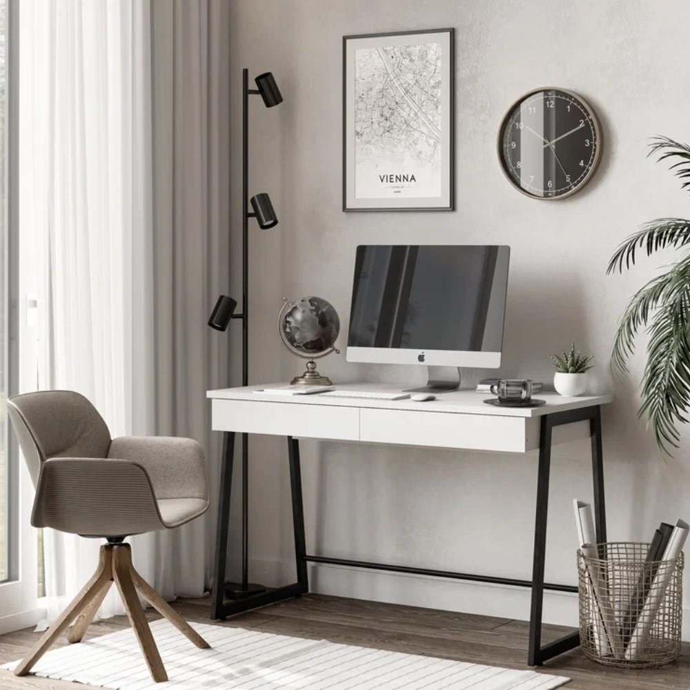 Каркас из проф. трубы 40х20 мм, покрытие черный муар, ЛДСП 16 мм белый шагрень, кромка белый шагрень.