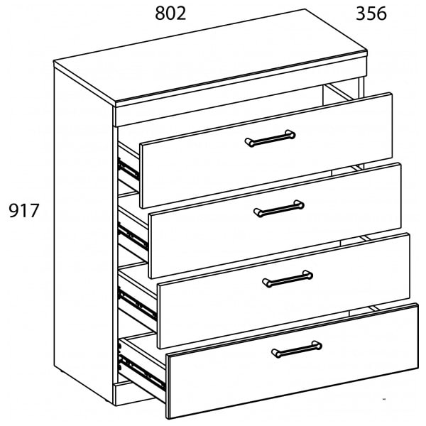 Комод 4S JAGGER организует компактное хранение белья и предметов одежды в интерьере спальни. На верхнем щите можно расположить декор, памятные вещи, фото и другие предметы. Комод JAGGER 4S имеет прямую конструкцию. Конструкция элемента представляет собой четыре выдвижных ящика (4S), расположенных друг над другом.