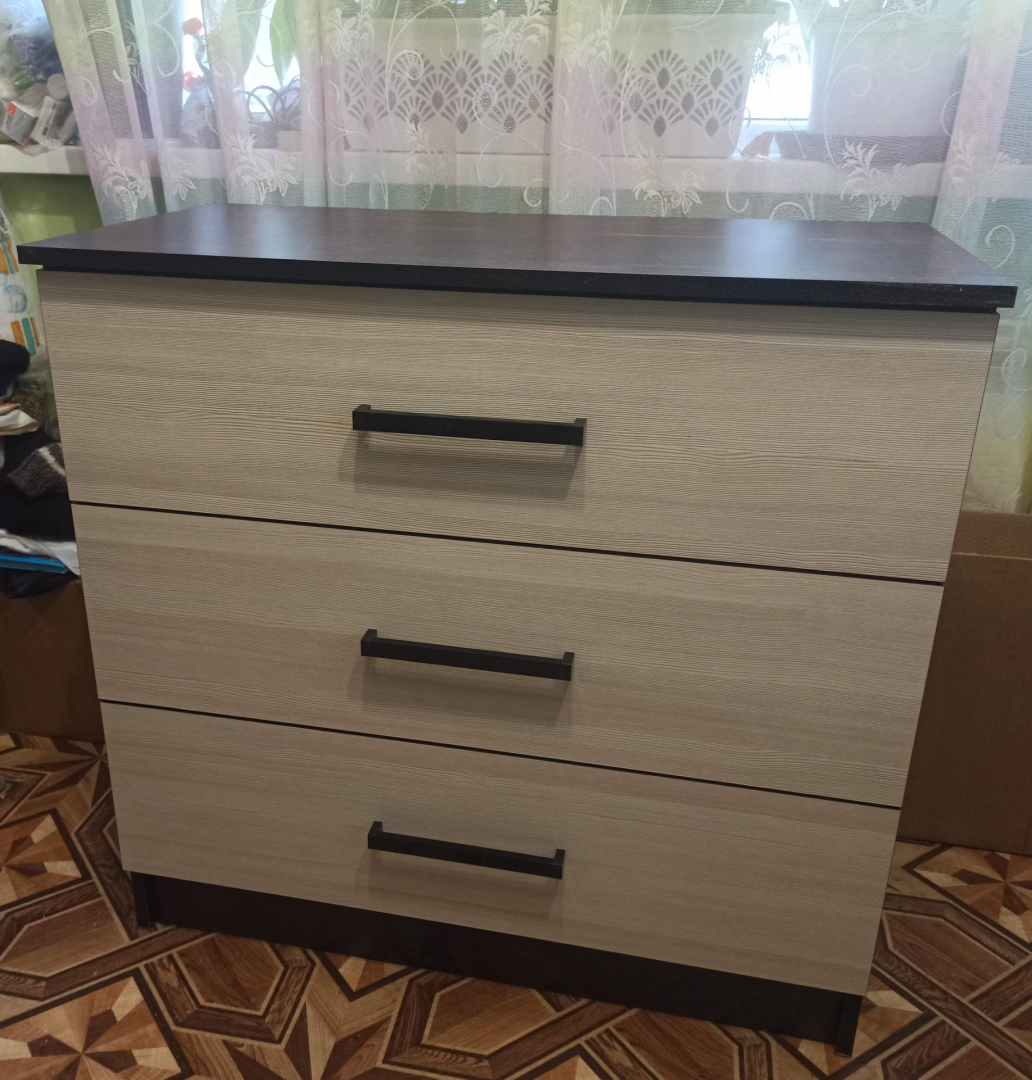 Комод поставляется в комплекте с фурнитурой и инструкцией по сборке. Тип направляющих - роликовый, что обеспечивает плавное и бесшумное выдвижение ящиков.