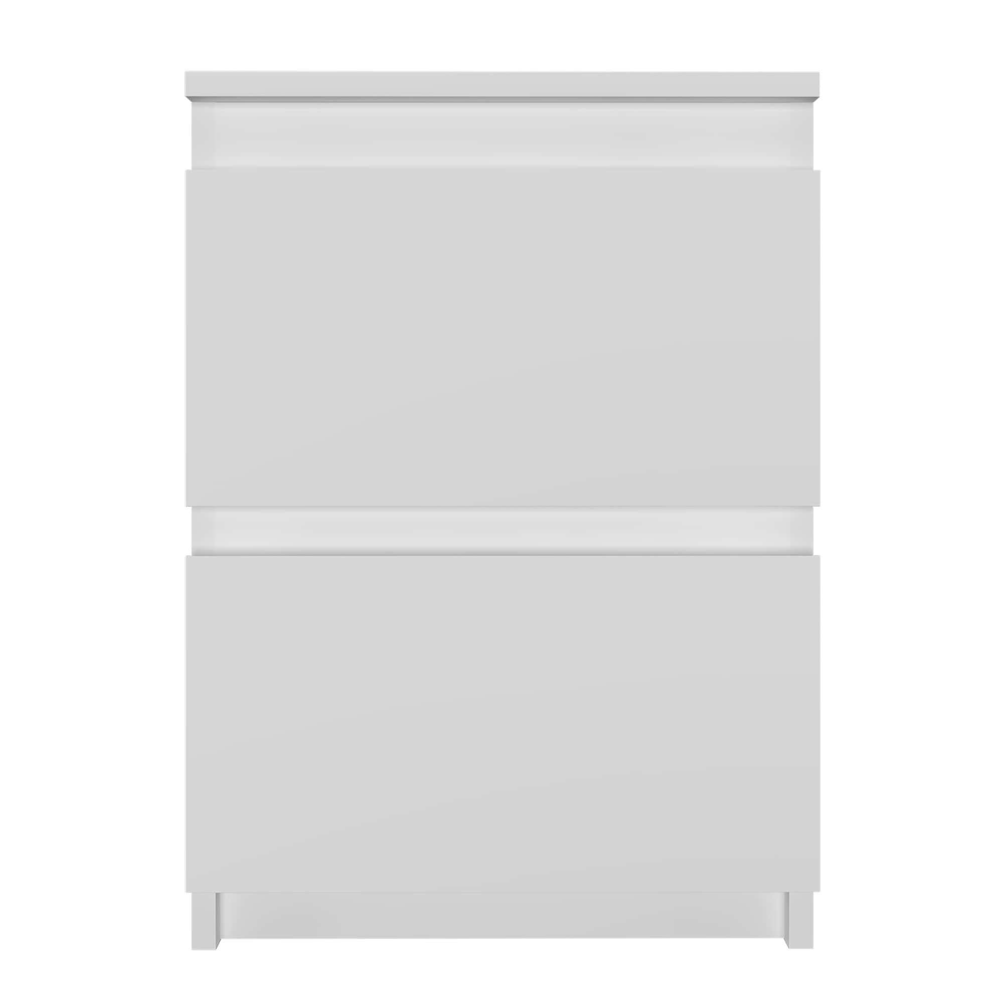 Корпус и фасад комода изготовлены из качественного ЛДСП, что гарантирует прочность и долговечность изделия. Матовая поверхность и отсутствие ручек придают комоду современный и стильный вид.