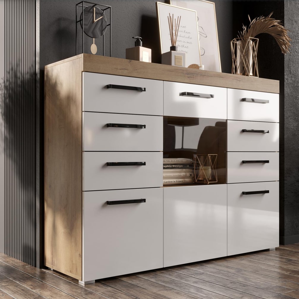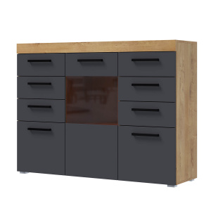 Комод “Бастон” выполнен в современном стиле и представляет собой идеальное сочетание функциональности и эстетики. Изготовлен из высококачественного материала, который придает ему прочность и долговечность. Белый глянцевый фасад комода эффектно контрастирует с темным основанием, создавая стильный и гармоничный образ.