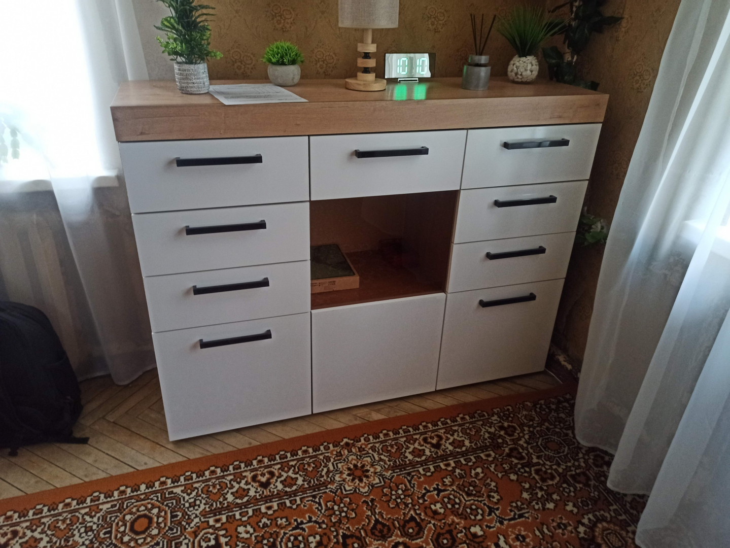 Комод имеет множество выдвижных ящиков, которые обеспечивают достаточно места для хранения одежды, белья и других предметов домашнего обихода. На верхней поверхности комода можно разместить предметы декора, фотографии или комнатные растения, дополняя интерьер вашего дома.