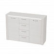 Комод оснащен четырьмя выдвижными ящиками на роликовых направляющих и двумя вместительными отделениями за распашными дверцами.