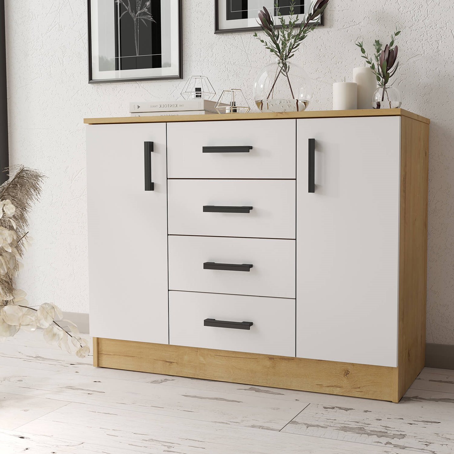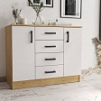 Комод оснащен четырьмя ящиками. Это позволяет хранить в них различные предметы, от одежды до книг и аксессуаров.