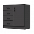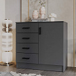 Комод оснащен четырьмя ящиками, что позволяет удобно разместить все необходимые вещи. Тип направляющих - роликовая, что обеспечивает плавное и бесшумное движение ящиков.