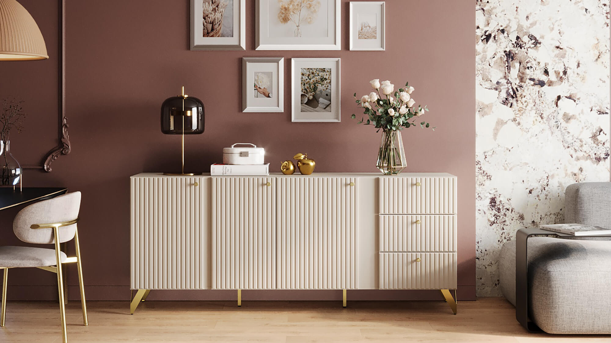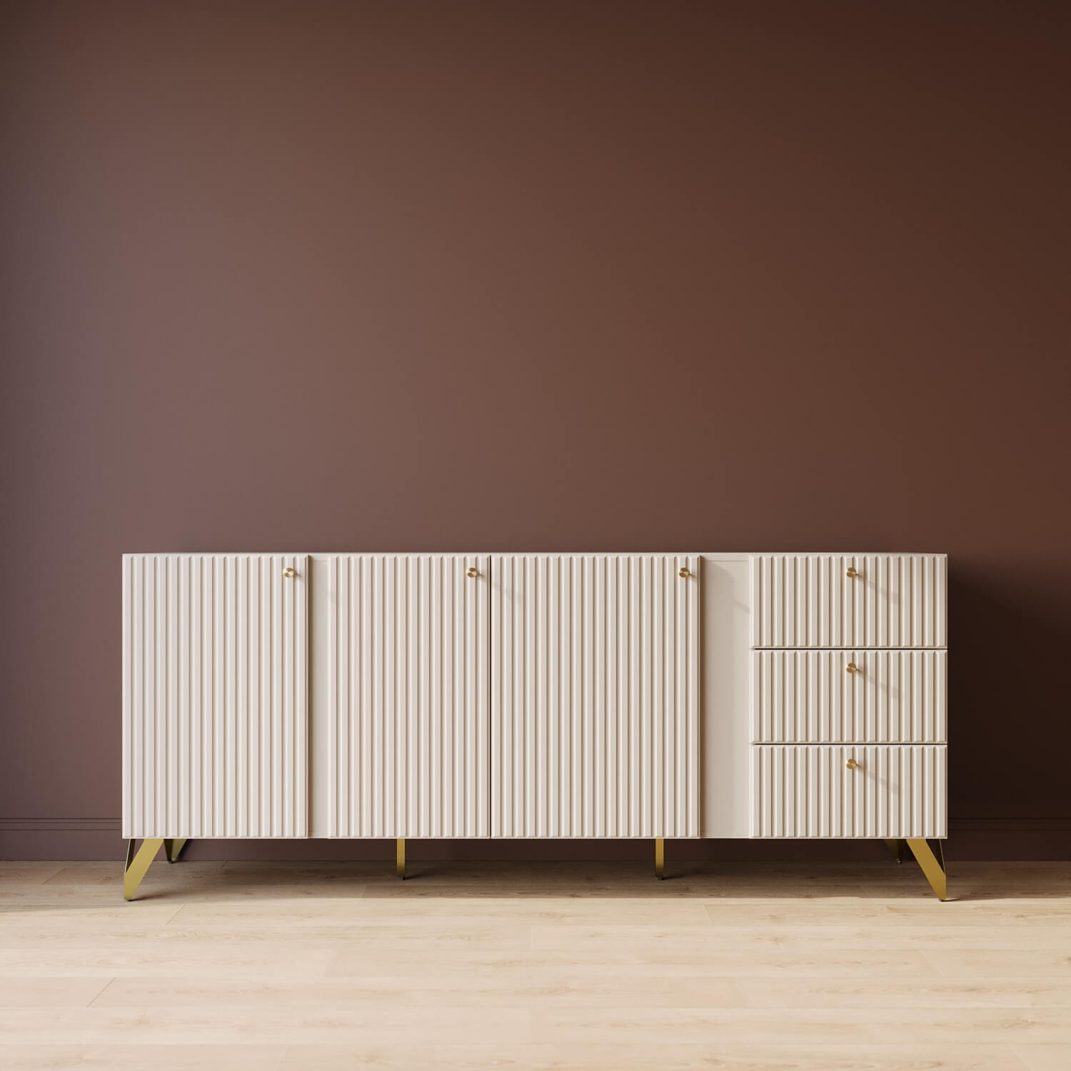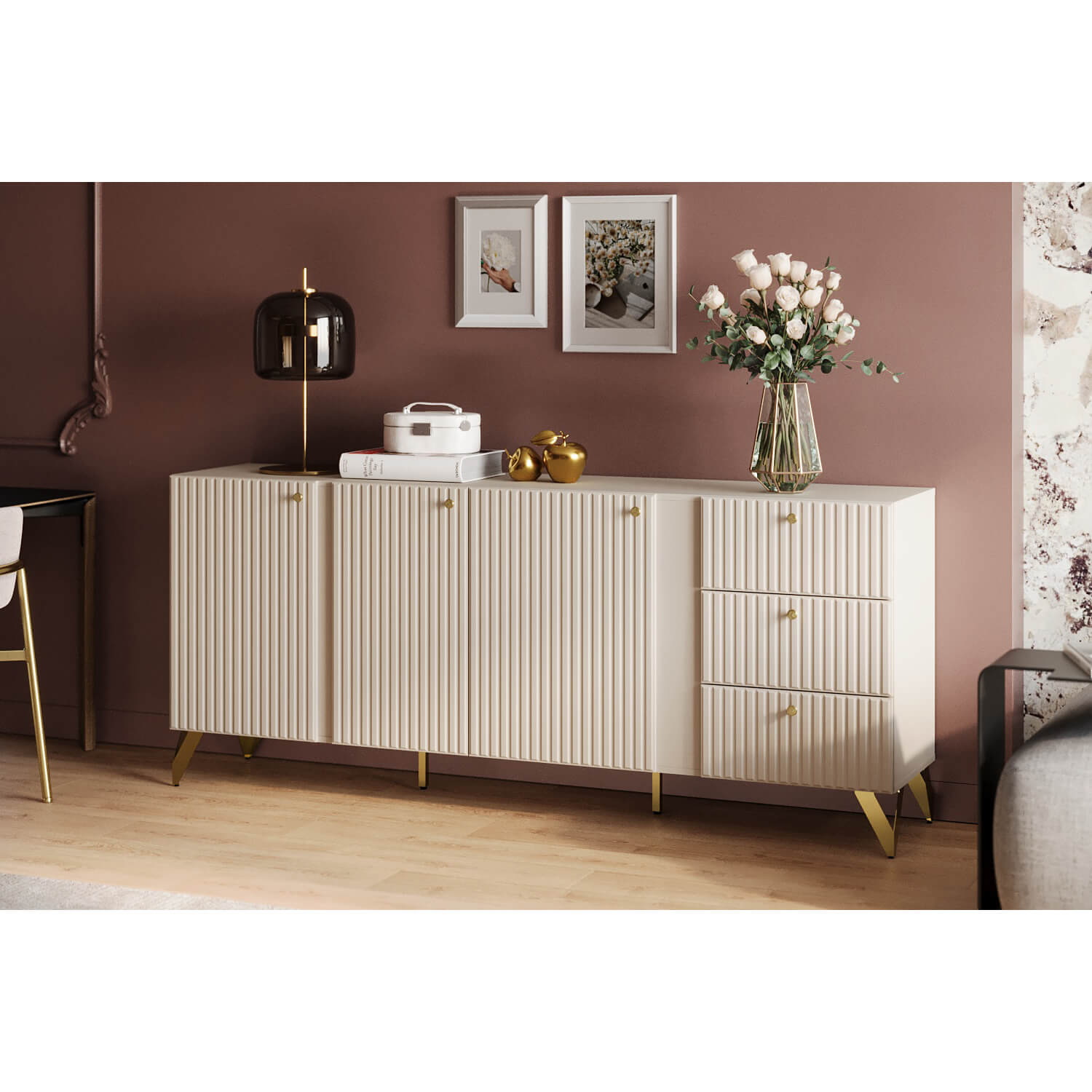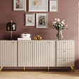Элегантный цвет "Камемир" позволит вписать комод в любой интерьер. Три вместительные секции за распашными дверями, три выдвижных ящика - максимальная вместительность. Петли с доводчиком - бесшумное закрывание. Направляющие - усиленные шариковые. Регулируемые опоры - позволяет выставить идеально ровно. Фасады МДФ - экологично. Фрезеровка на фасаде - красиво и современно. Высота опоры 150 мм - удобно для уборки.