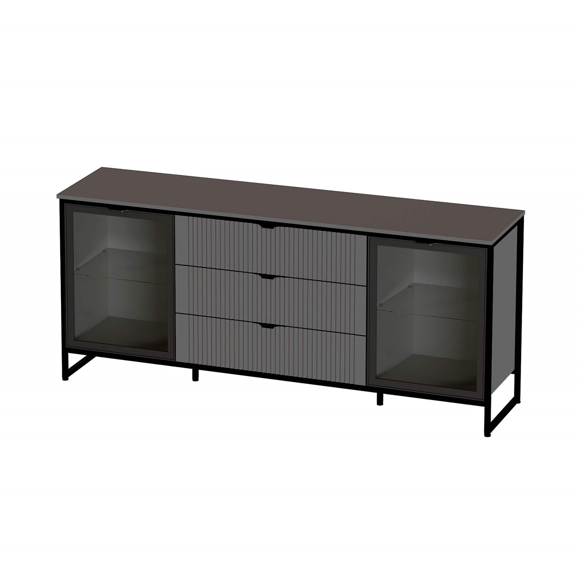 Комод Нора-2 2 двери и 3 ящика с витринами Металл Бруклин/Графит