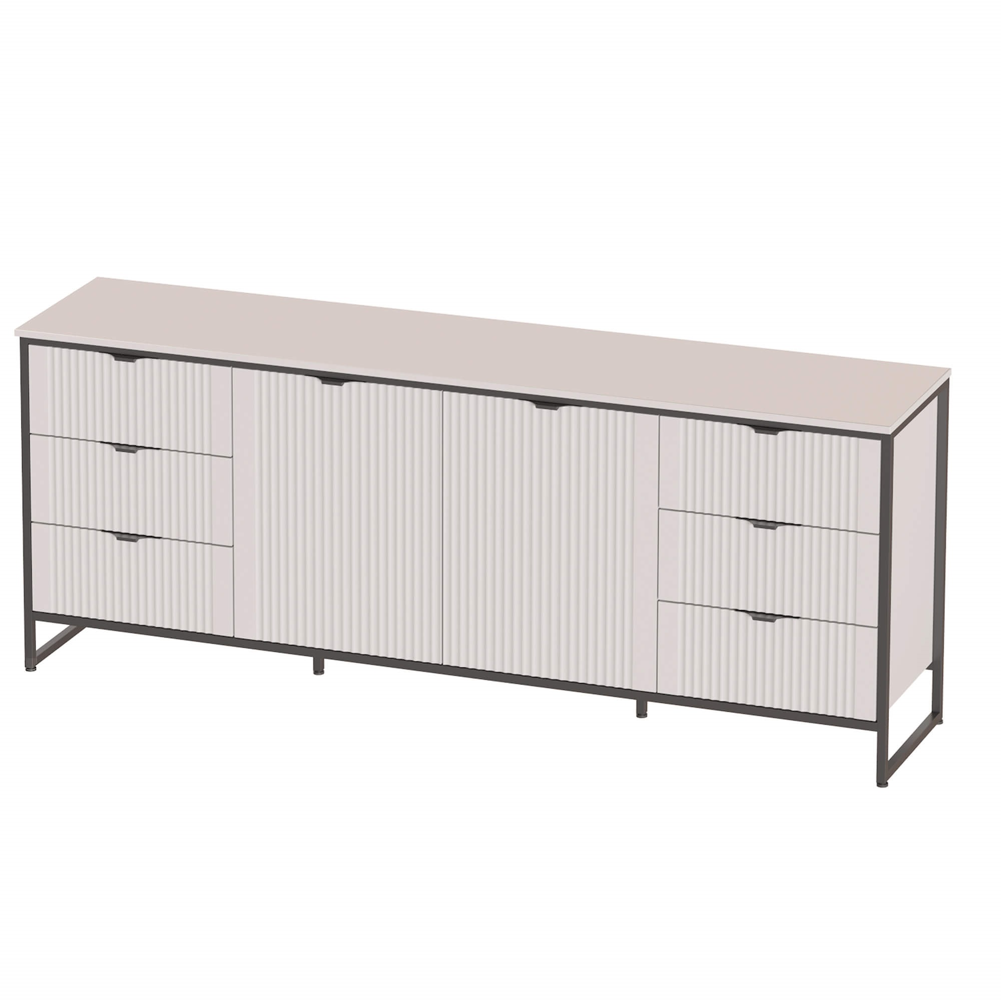 Комод с 2 дверями и 6 ящиками "Нора" на металлокаркасе позволяет удобно хранить вещи и поддерживать порядок в комнате. Он выполнен из безопасных, качественных материалов (лдсп и мдф), что гарантирует долговечность и сохранение первоначального вида на протяжении долгого времени.