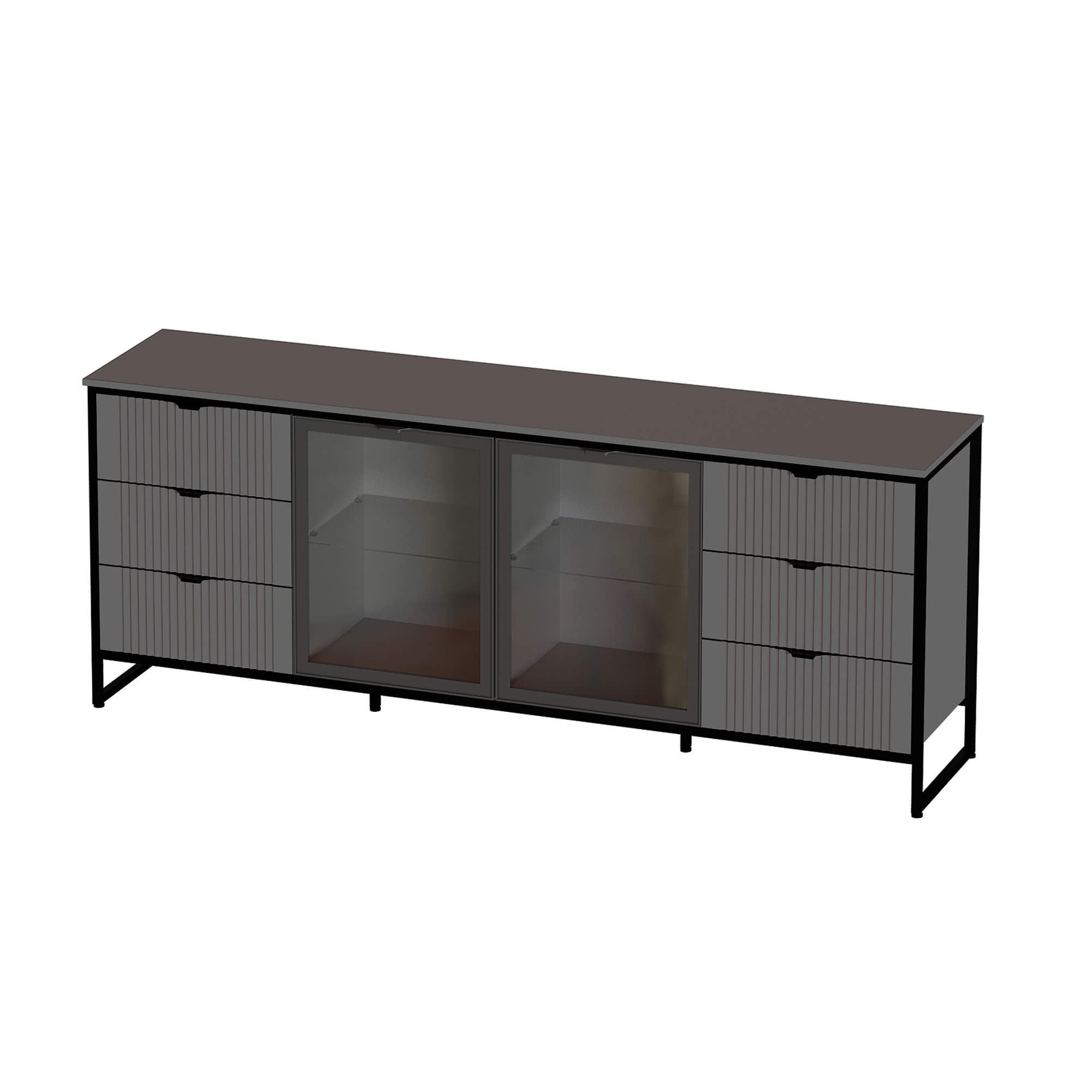 Комод с 2 дверями и 6 ящиками "Нора" на металлокаркасе позволяет удобно хранить вещи и поддерживать порядок в комнате. Он выполнен из безопасных, качественных материалов (лдсп и мдф), что гарантирует долговечность и сохранение первоначального вида на протяжении долгого времени.