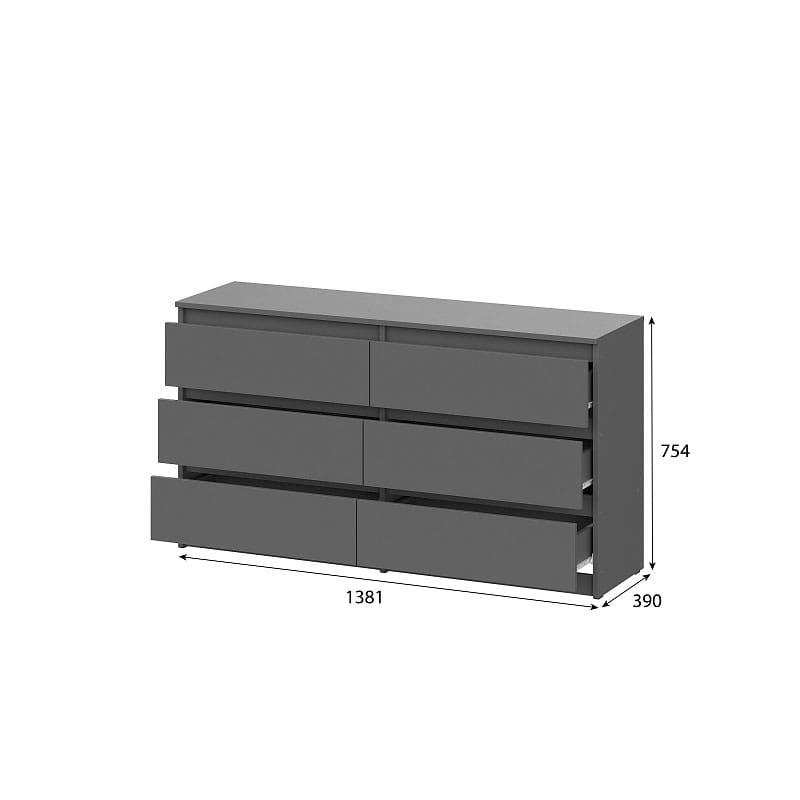 Комод с 6 ящиками Денвер Графит серый