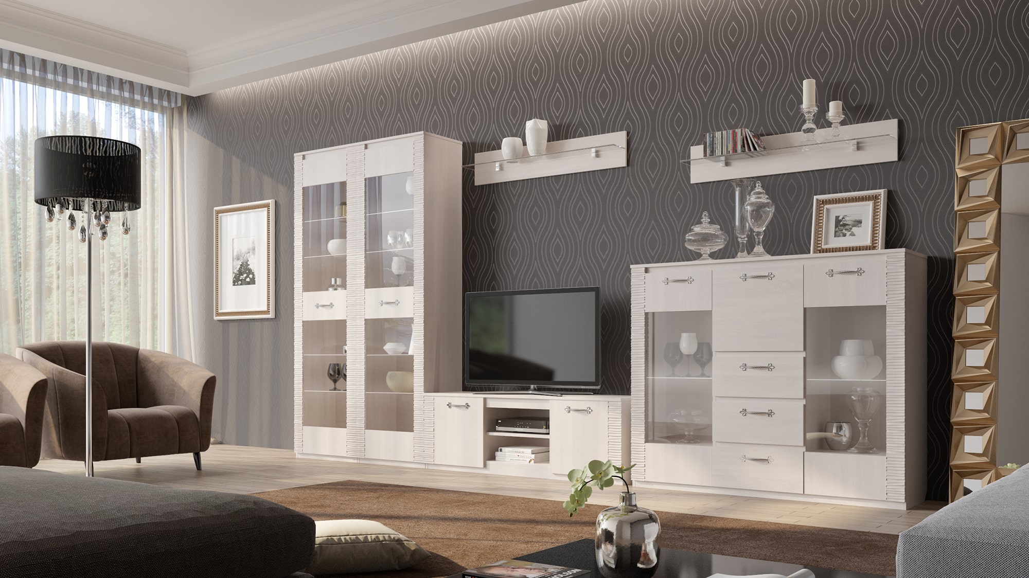 Современная гостиная — многофункциональное помещение, которое используется не только для приема гостей, но и для учебы, работы, творческой деятельности и даже занятий спортом. Поэтому в мебели для этой комнаты должны сочетаться надежность, безопасность, практичность и эстетичность.