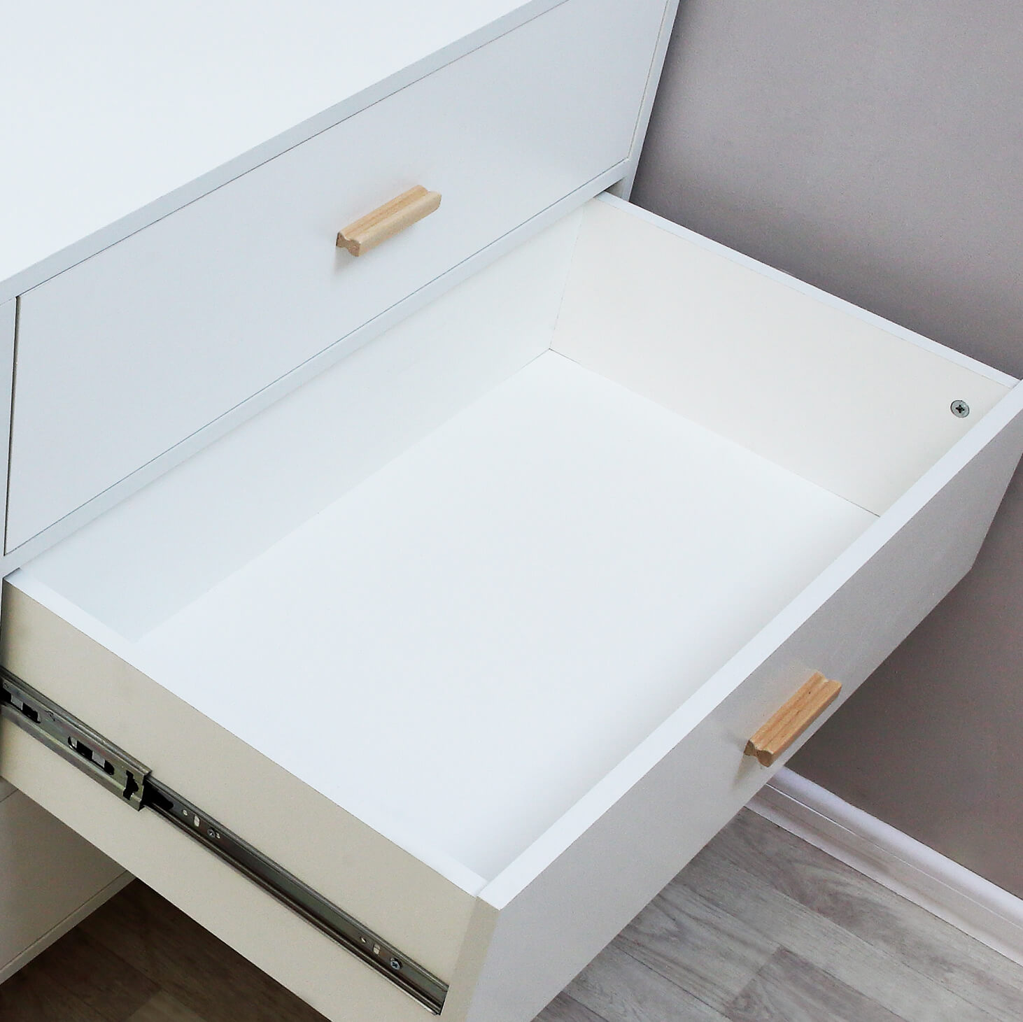 - выдвижные ящики на телескопических направляющих, которые обеспечивают полное и плавное открывание ящика и выдерживают большие нагрузки;