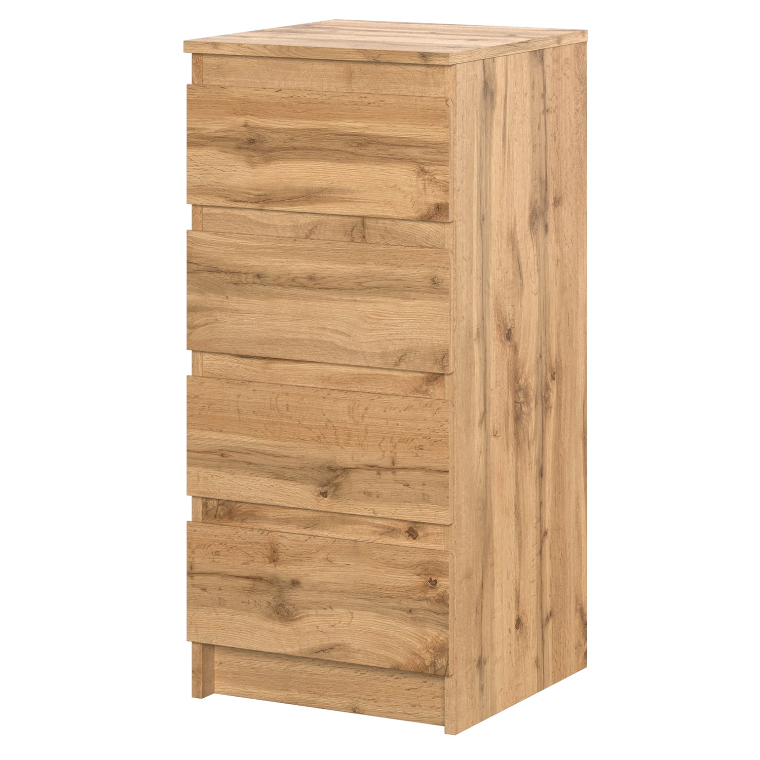 Серия мебели STERN отличается современным дизайном без лишних деталей, который будет уместен в любой комнате. Удобные скошенные ручки на фасадах и модные цвета декоративной отделки придают комоду элегантный вид.