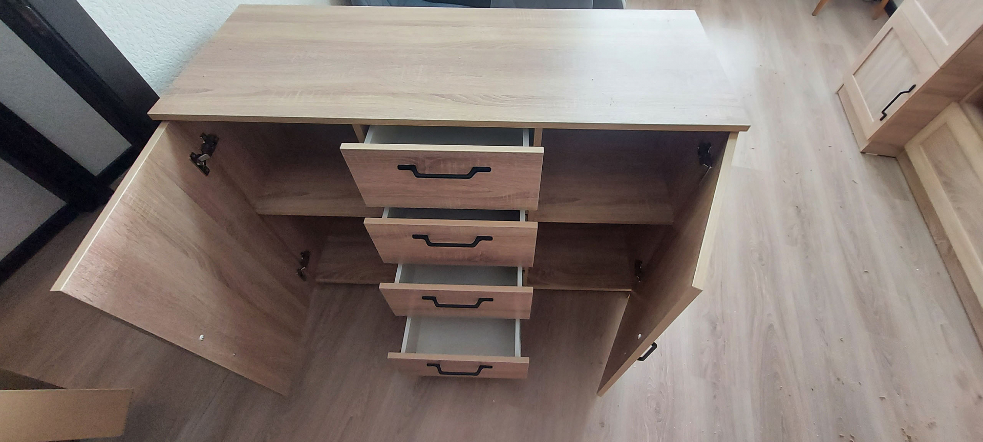 Комод 2.08 с механизмом полного выдвижения очень вместительный и удобный. Надежный механизм шариков подшипников обеспечивает износостойкость и плавность хода, не производит излишнего шума при движении.