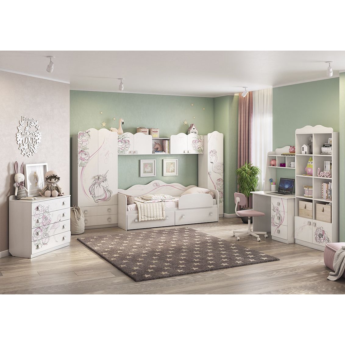 Декор: изысканный, добавляющий утонченности интерьеру детской.