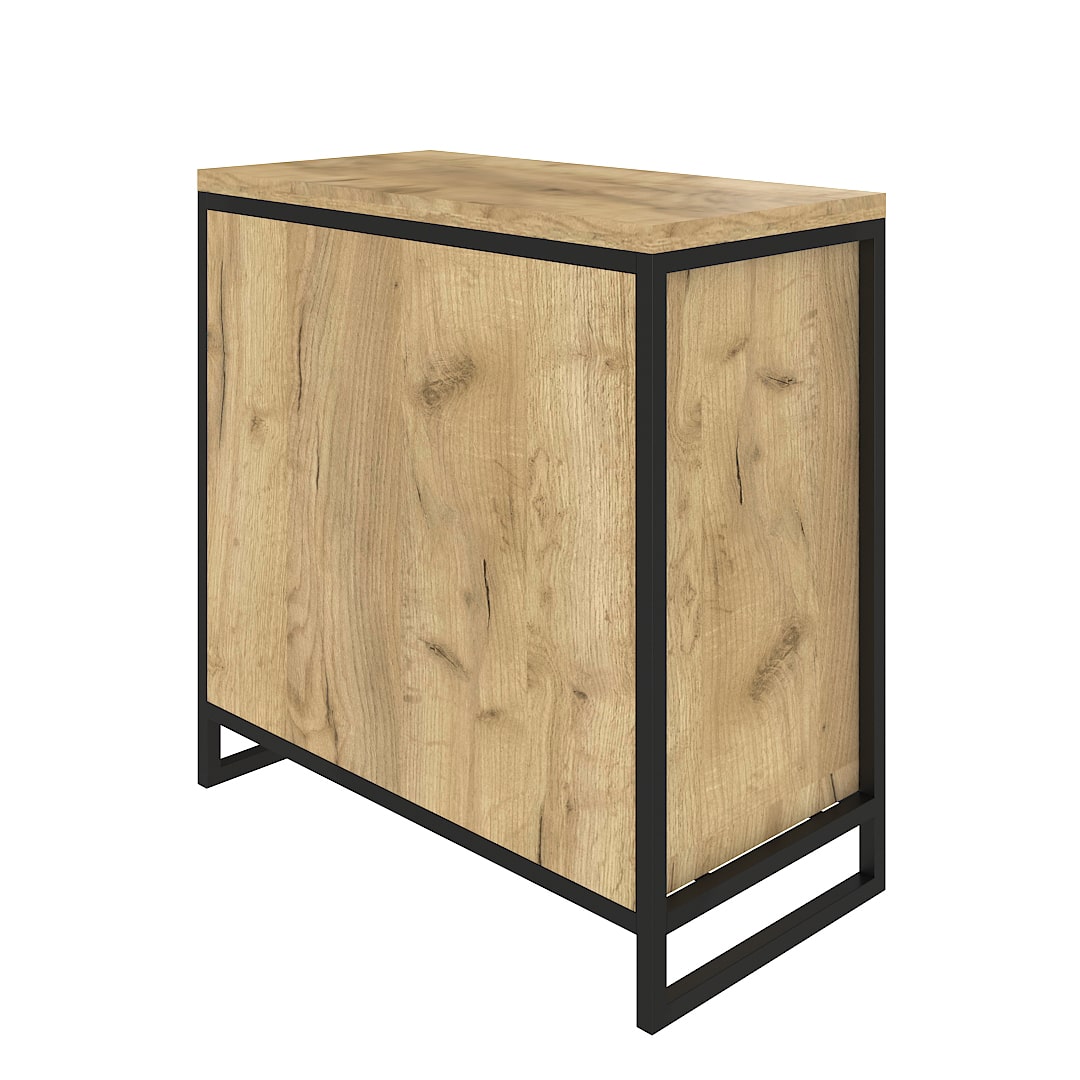 Каркас из трубы 25х25 мм, порошковое покрытие черный муар, ЛДСП 32 мм, цвет дуб табачный, направляющие скрытого монтажа с доводчиком.