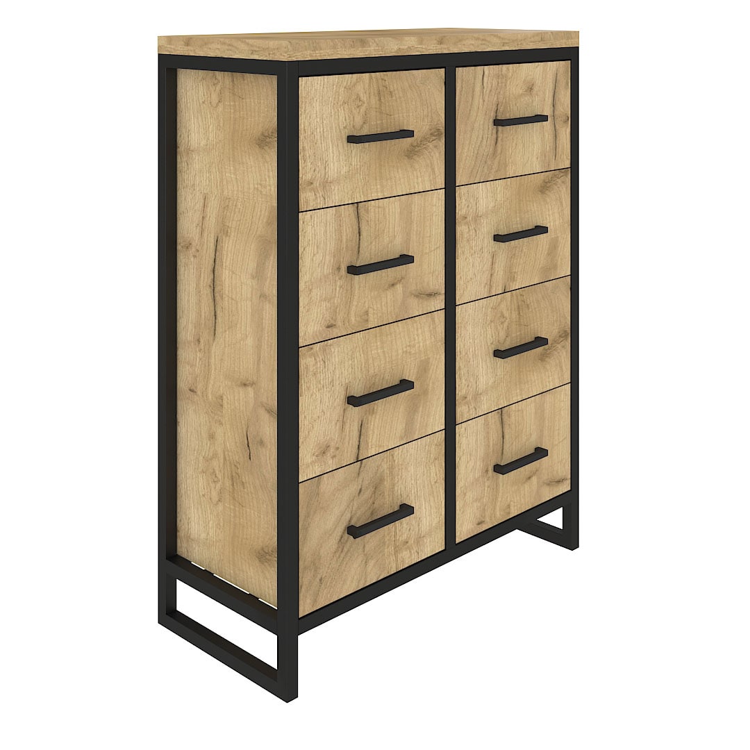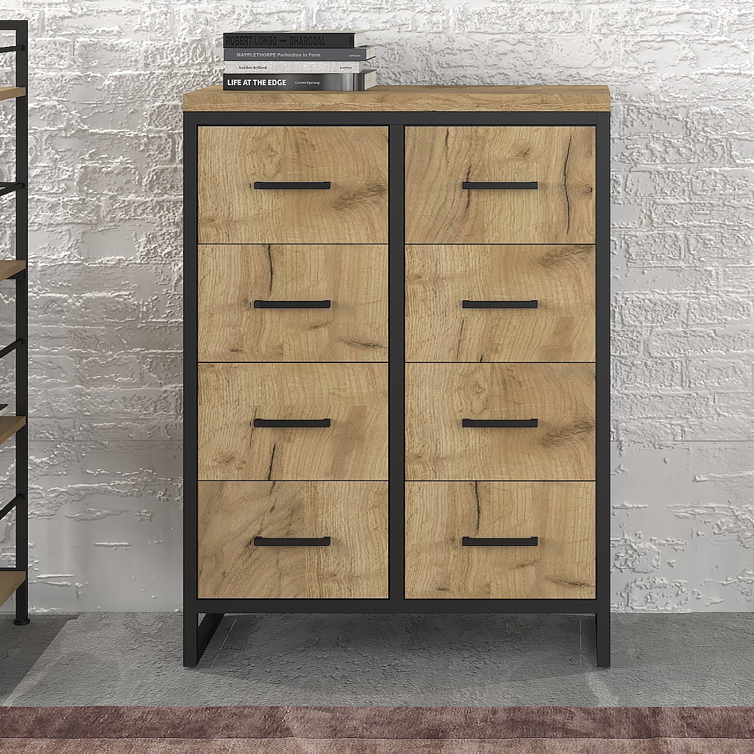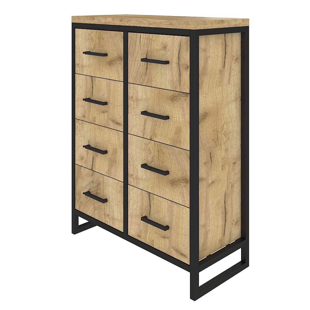Каркас из трубы 25х25 мм, порошковое покрытие черный муар, ЛДСП 32 мм, цвет дуб табачный, направляющие скрытого монтажа с доводчиком.