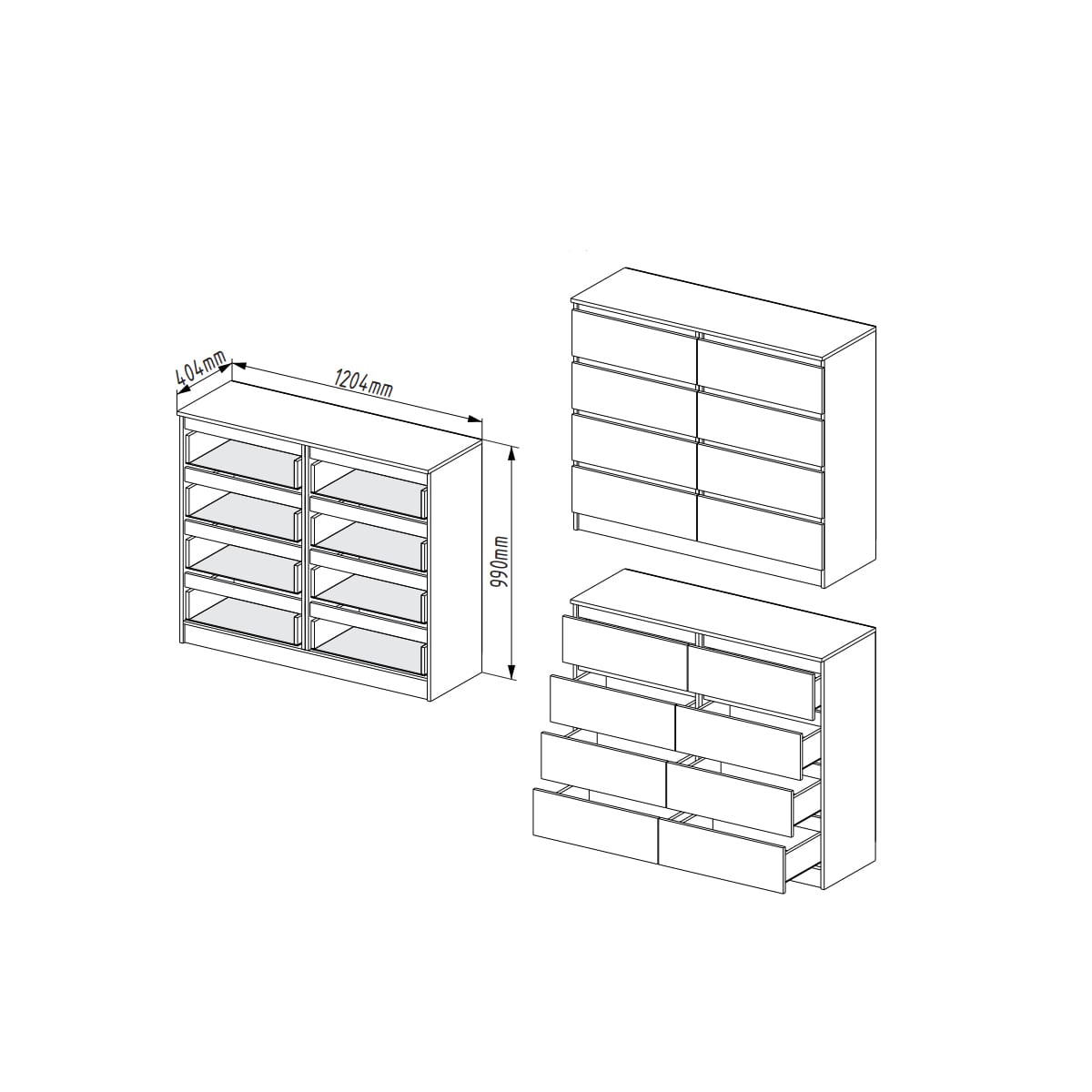 Комод Мори 1200 8 ящиков Белый