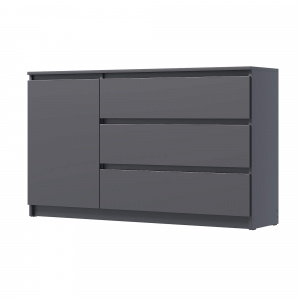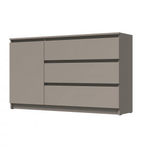 Комод «Вега» — стильное и практичное решение для организации пространства в вашем доме. Модель сочетает современный дизайн с продуманной функциональностью: вместительные ящики и отделение за дверцей позволяют аккуратно хранить одежду, постельное бельё или бытовые мелочи.