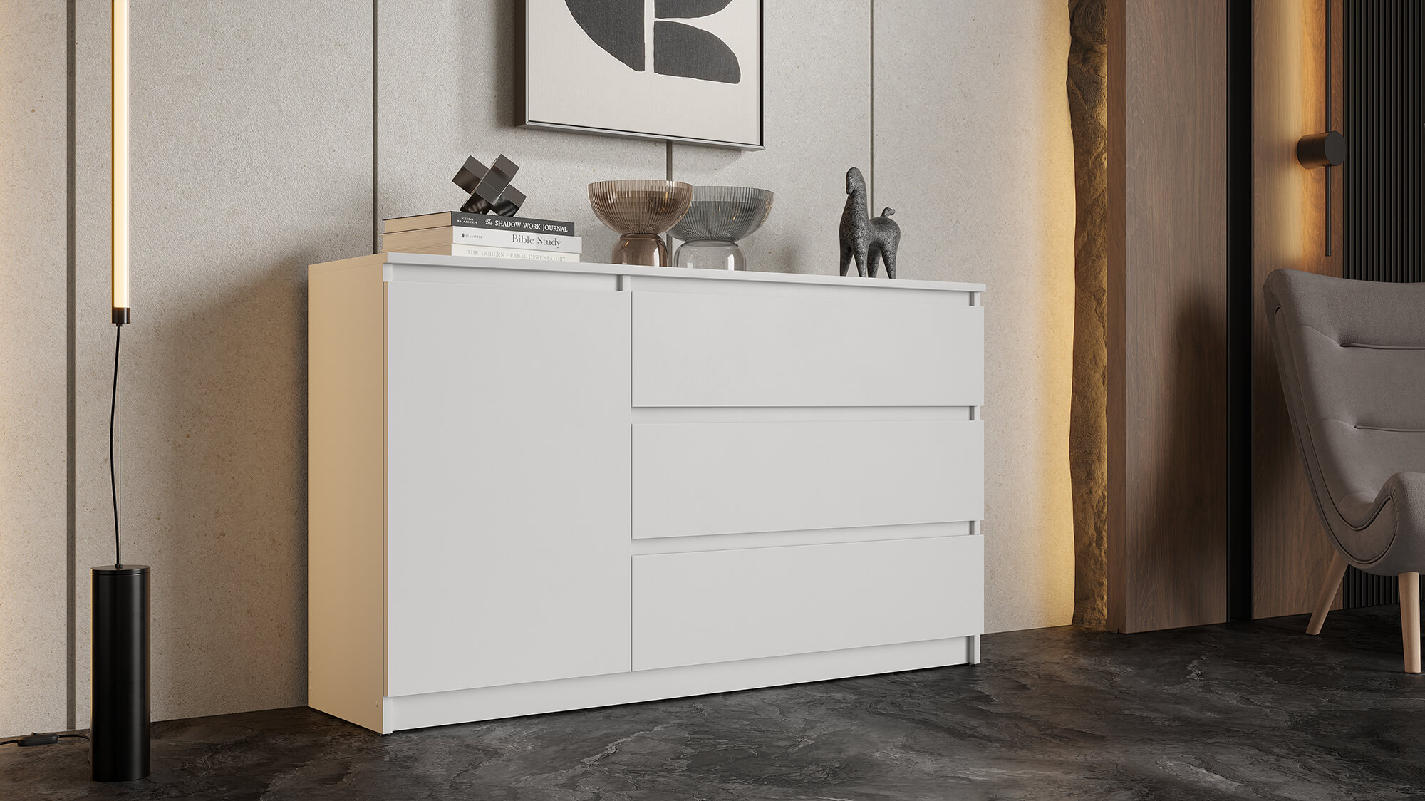 Комод ВЕГА 1Д-3Я Белый гладкий