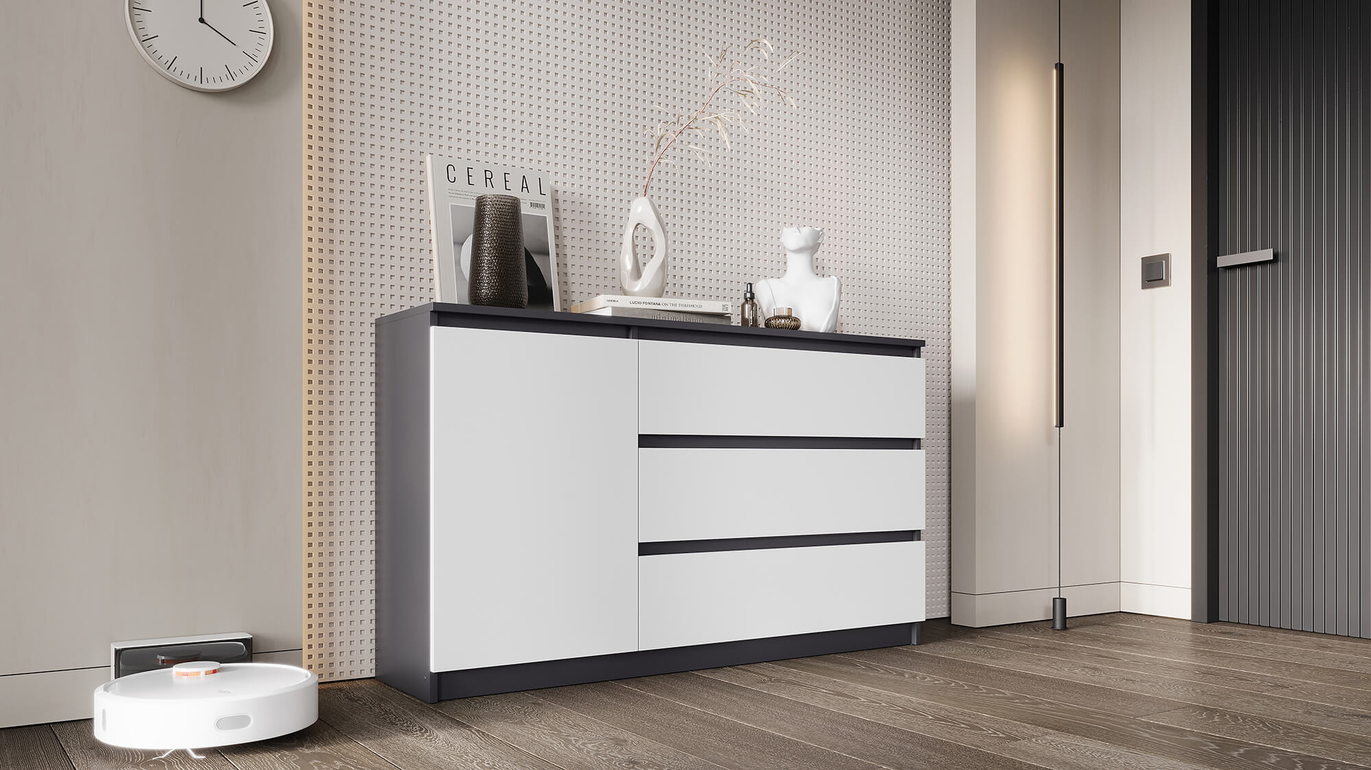 Комод ВЕГА 1Д-3Я Графит/Белый гладкий