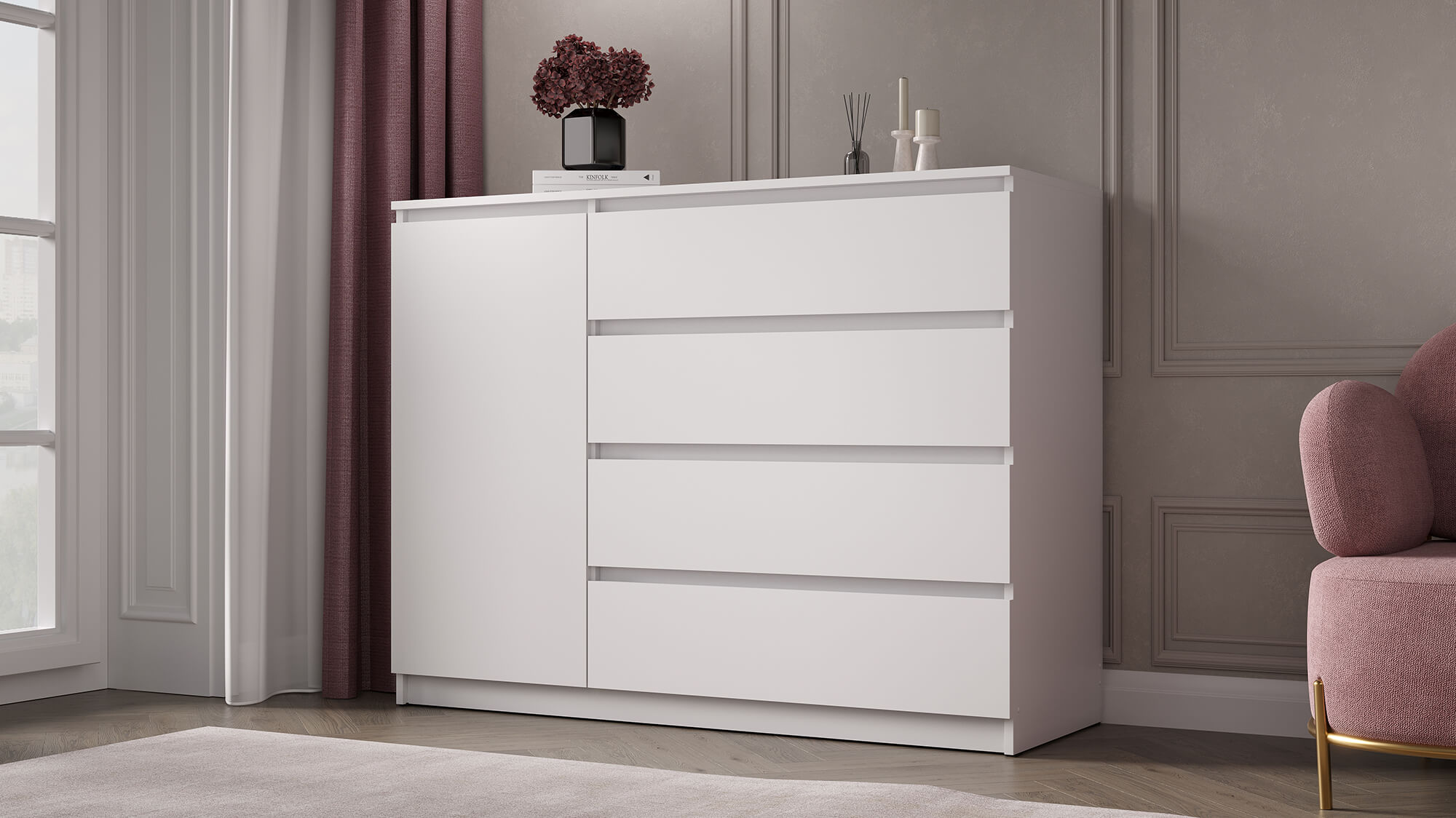 Благодаря лаконичному внешнему виду комод органично впишется в интерьер спальни, гостиной или прихожей. Прочные материалы и надёжная фурнитура гарантируют долгий срок службы, а чёткие линии и стильная цветовая гамма подчеркнут эстетику вашего дома.