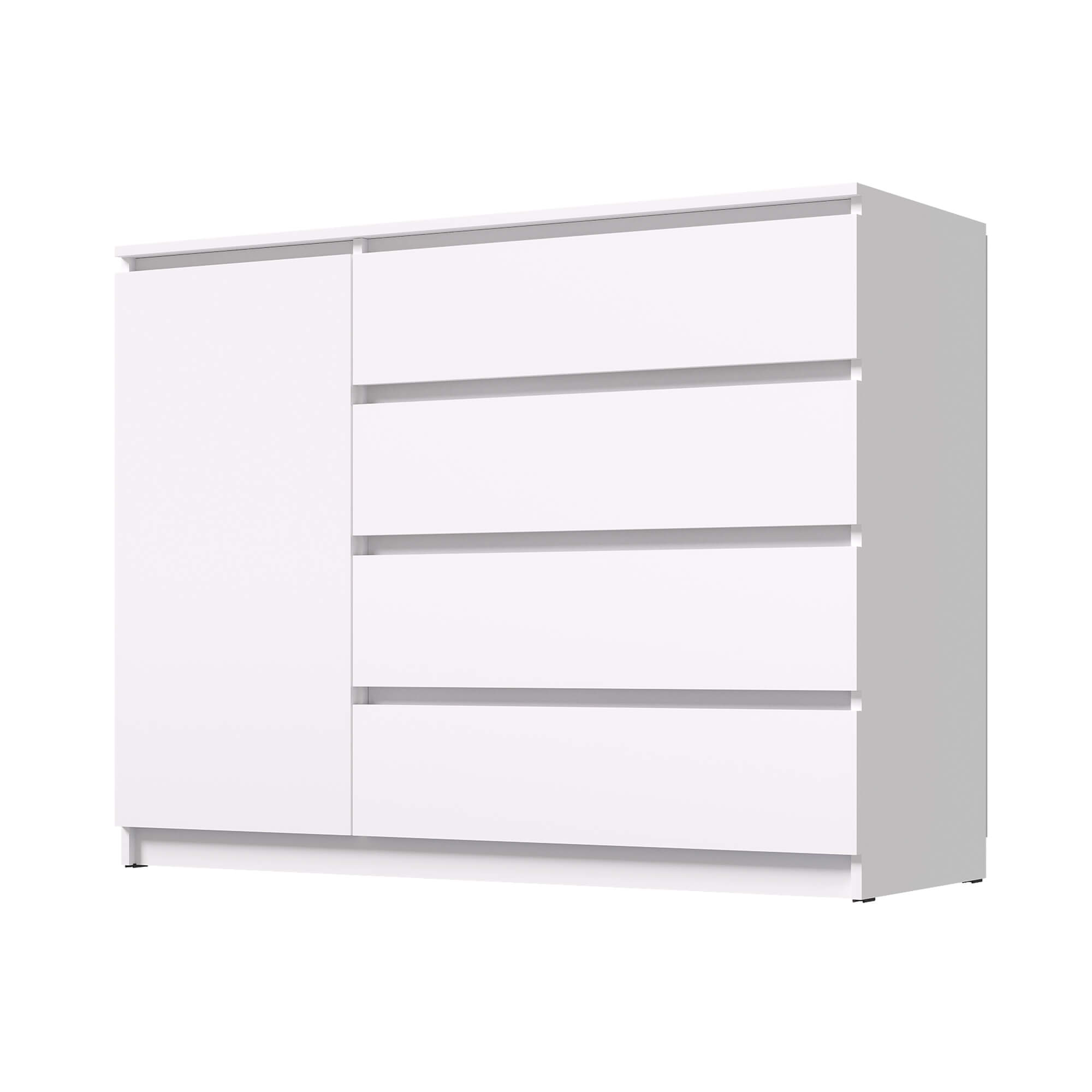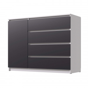 Комод «Вега» — стильное и практичное решение для организации пространства в вашем доме. Модель сочетает современный дизайн с продуманной функциональностью: вместительные ящики и отделение за дверцей позволяют аккуратно хранить одежду, постельное бельё или бытовые мелочи.
