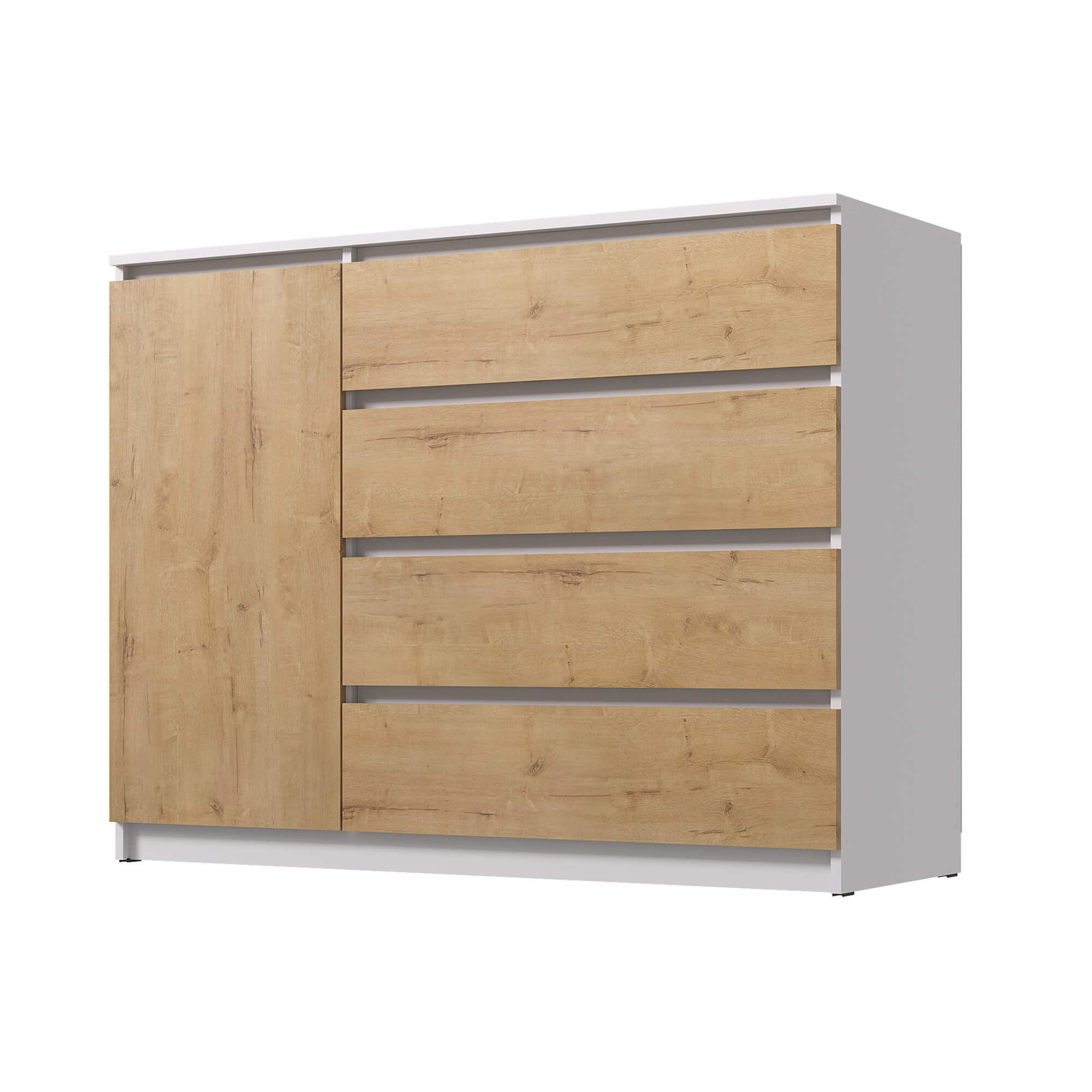 Комод ВЕГА Люкс 1Д-4Я Белый гладкий/Дуб Вотан