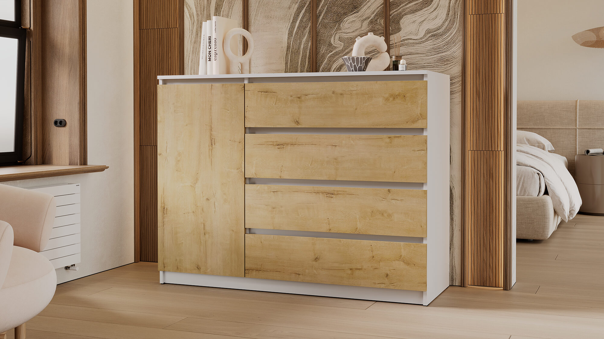 Комод ВЕГА Люкс 1Д-4Я Дуб Вотан/Белый гладкий