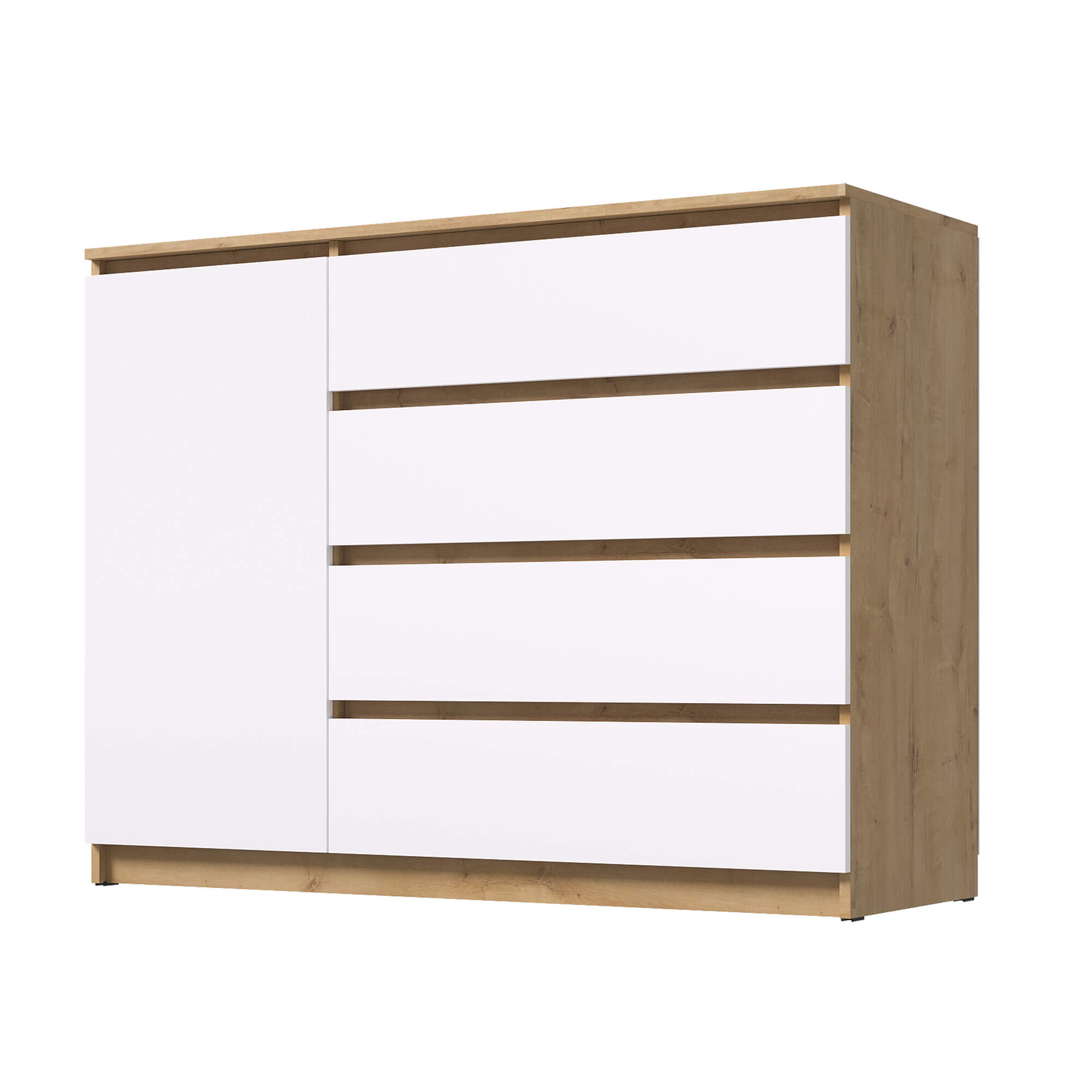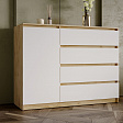 Комод «Вега» — стильное и практичное решение для организации пространства в вашем доме. Модель сочетает современный дизайн с продуманной функциональностью: вместительные ящики и отделение за дверцей позволяют аккуратно хранить одежду, постельное бельё или бытовые мелочи.