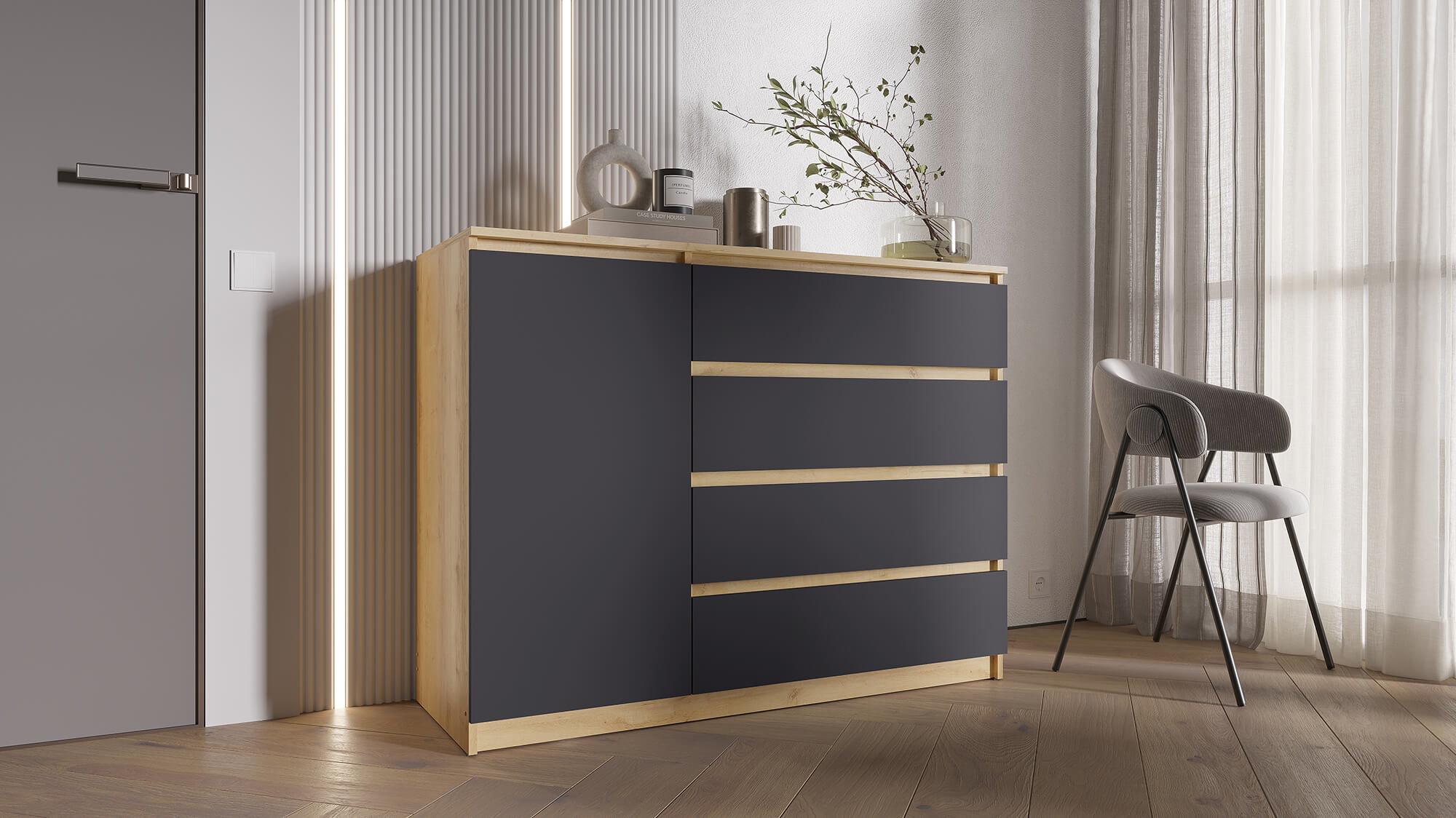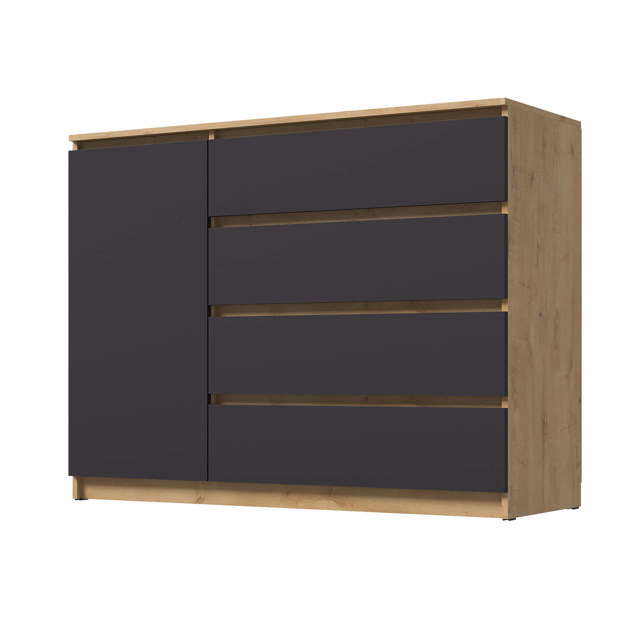 Комод ВЕГА Люкс 1Д-4Я Дуб Вотан/Графит