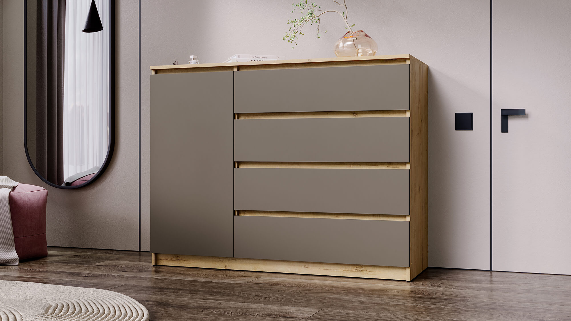 Благодаря лаконичному внешнему виду комод органично впишется в интерьер спальни, гостиной или прихожей. Прочные материалы и надёжная фурнитура гарантируют долгий срок службы, а чёткие линии и стильная цветовая гамма подчеркнут эстетику вашего дома.