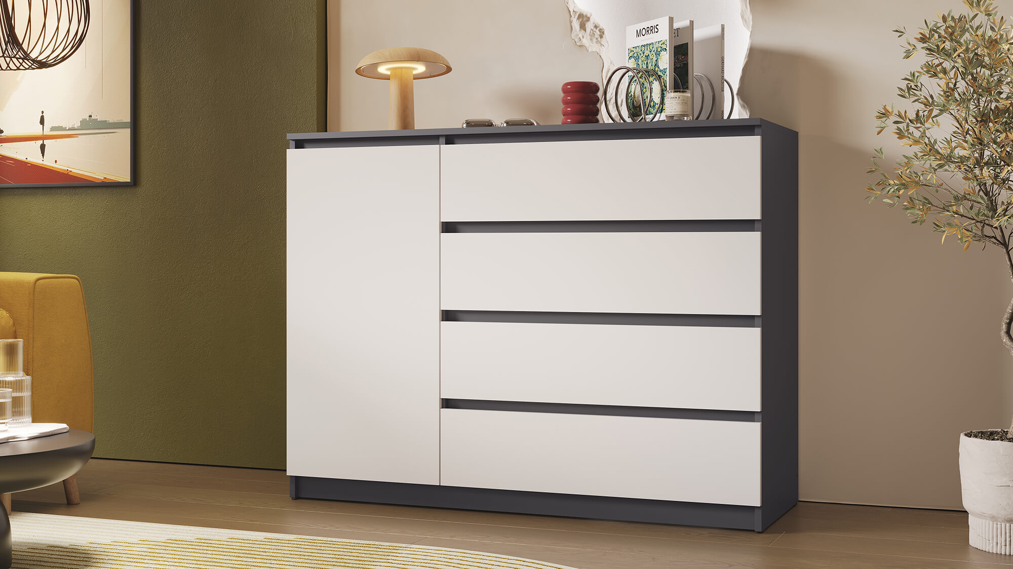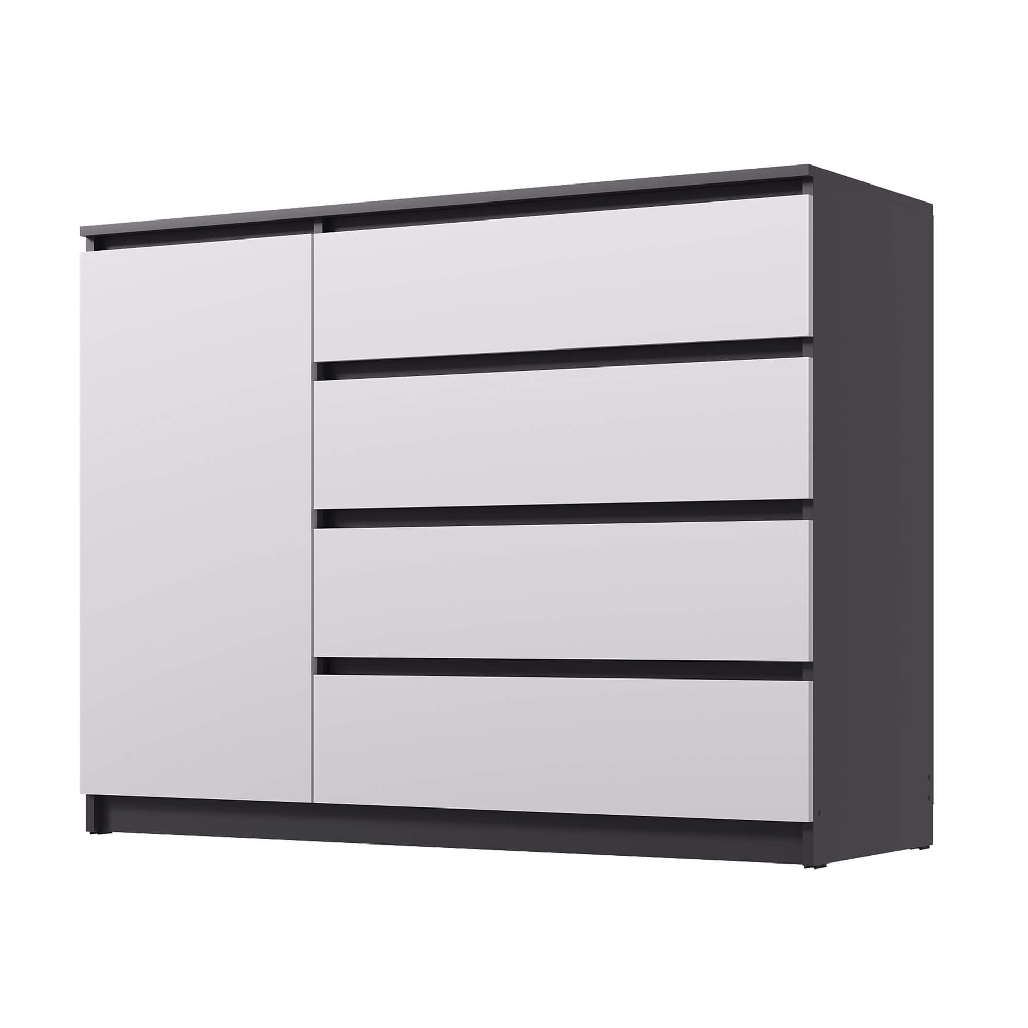 Комод ВЕГА Люкс 1Д-4Я Графит/Белый гладкий