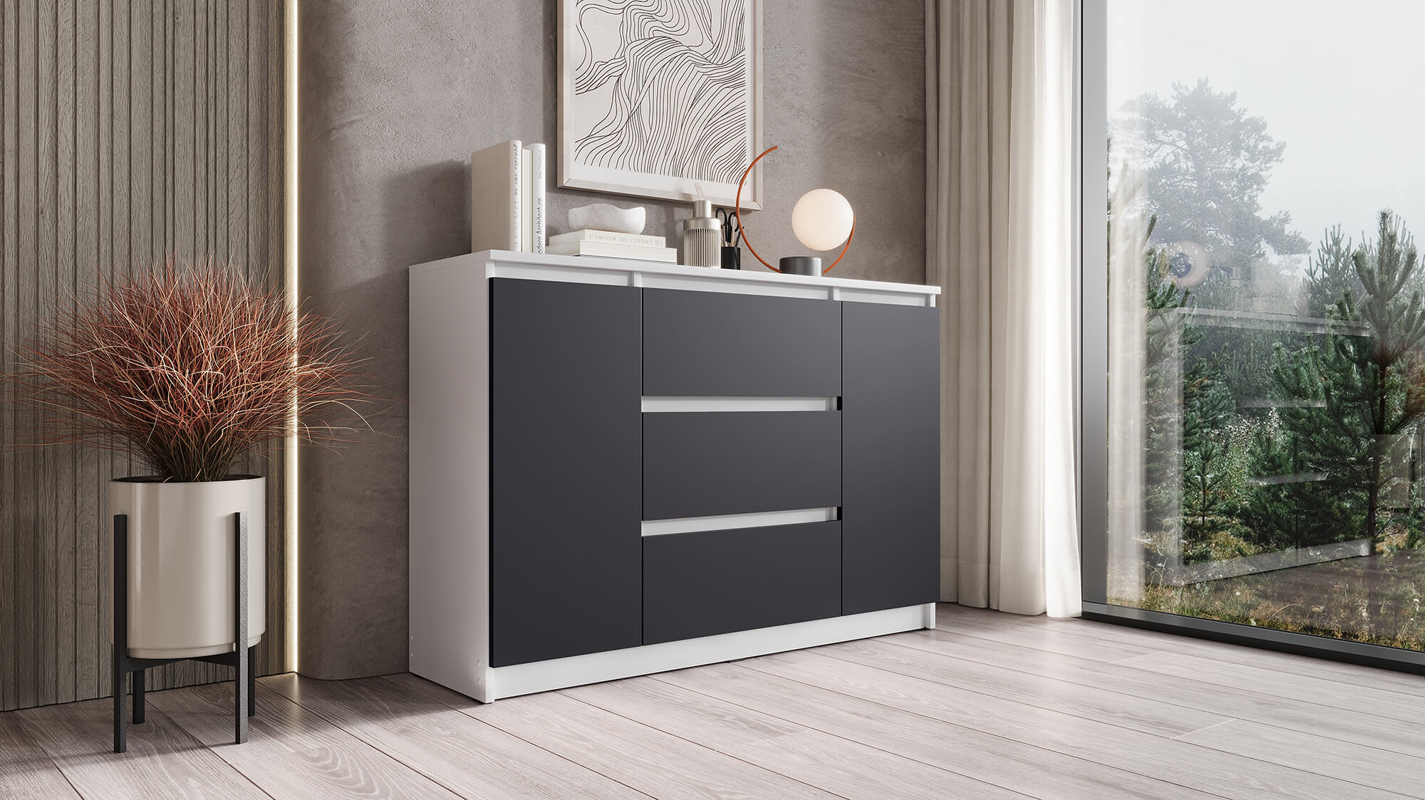 Комод ВЕГА 2Д-3Я Графит/Белый гладкий