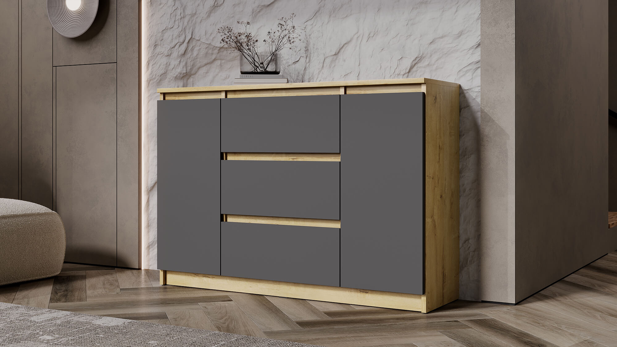 Комод ВЕГА 2Д-3Я Дуб вотан/Графит