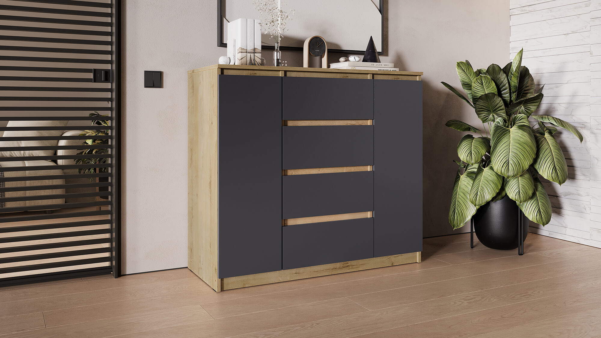 Комод ВЕГА Люкс 2Д-4Я Дуб Вотан/Графит