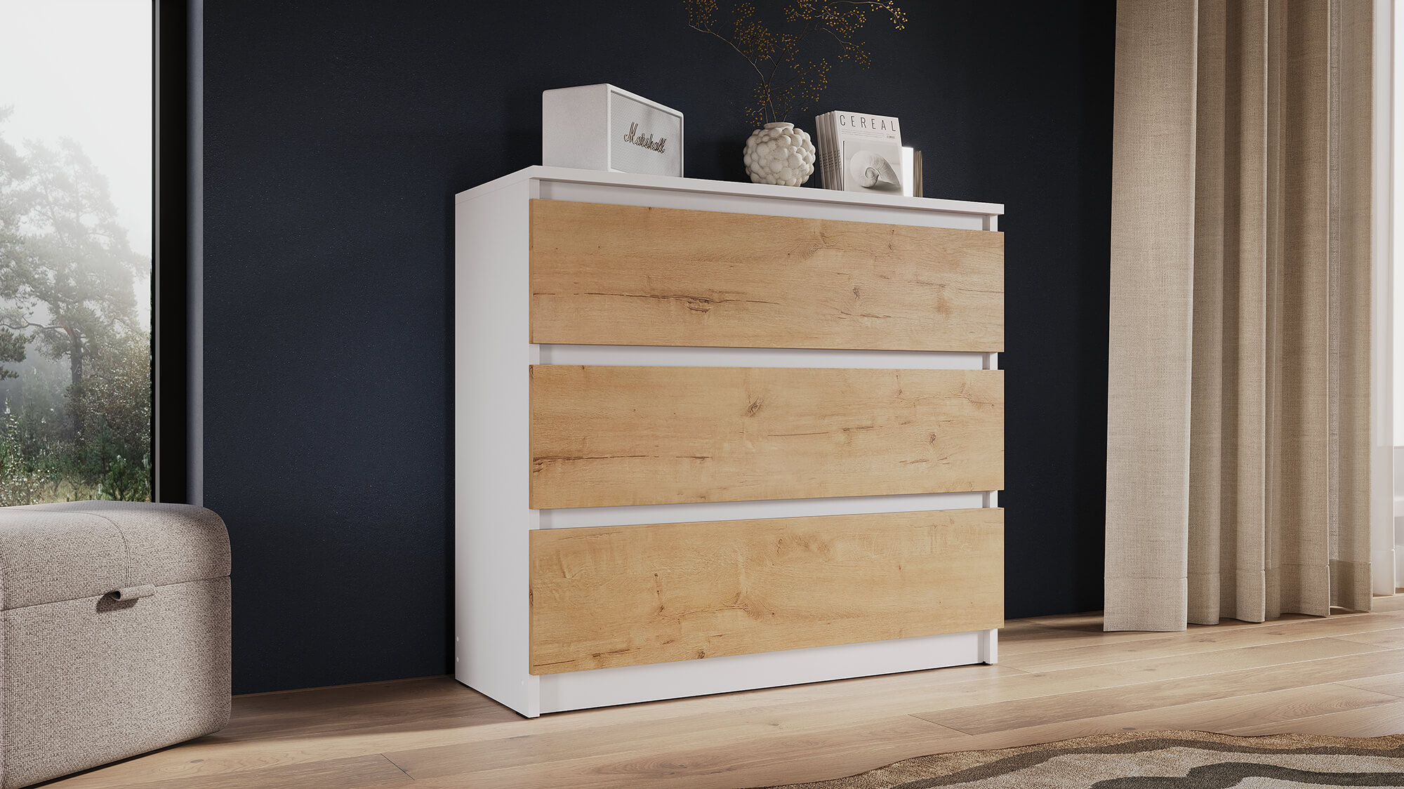 Комод ВЕГА 3Я Белый гладкий/Дуб Вотан