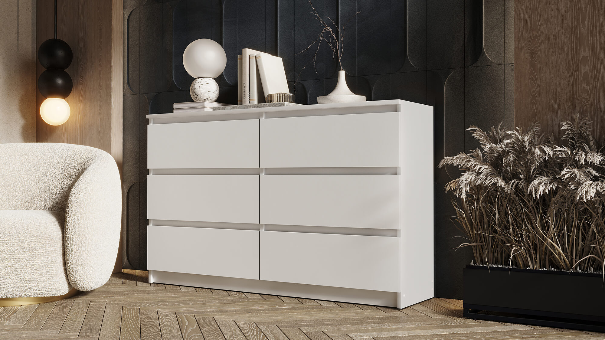 Комод «Вега» — стильное и практичное решение для организации пространства в вашем доме. Модель сочетает современный дизайн с продуманной функциональностью: вместительные ящики позволяют аккуратно хранить одежду, постельное бельё или бытовые мелочи.