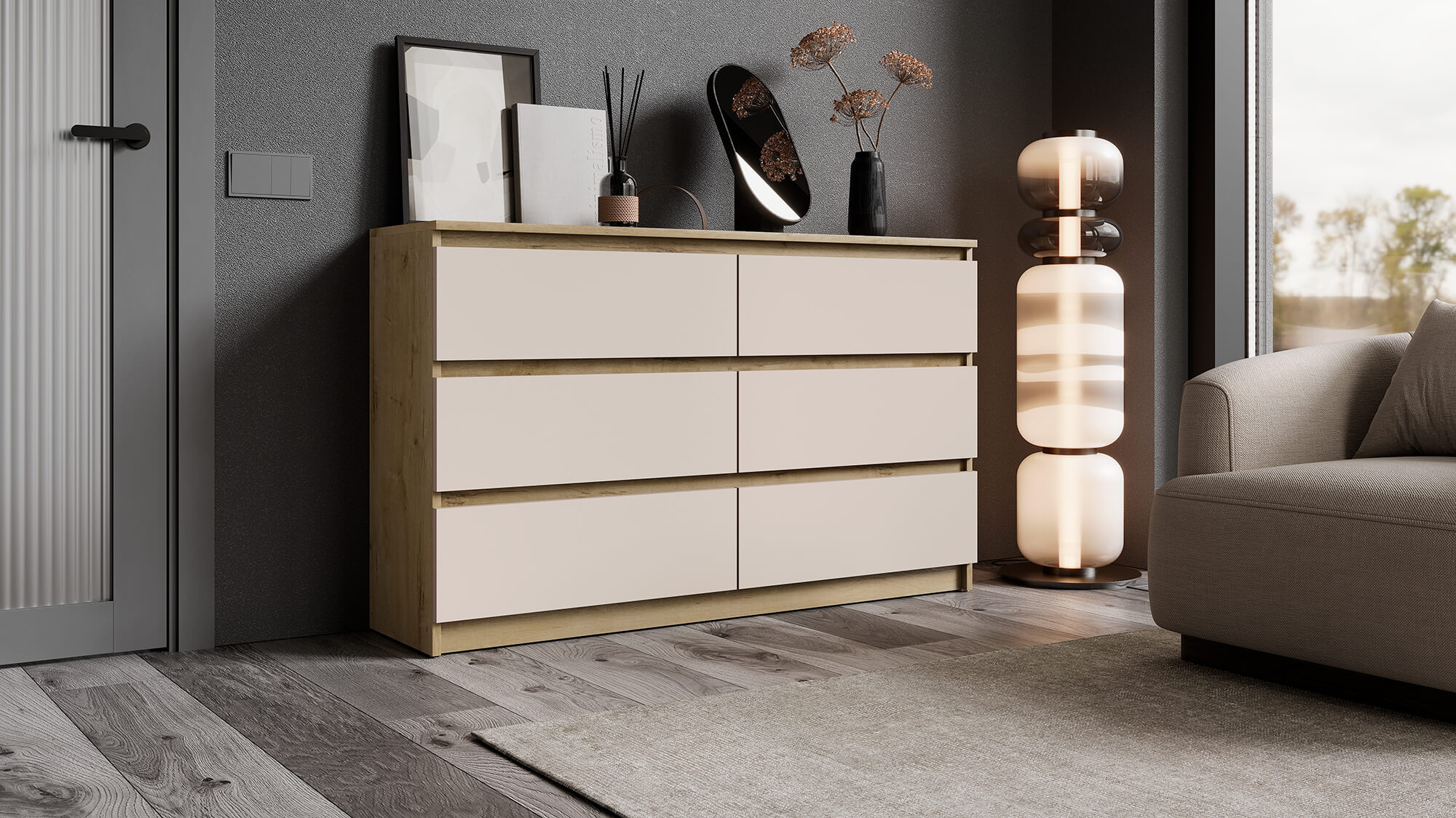 Благодаря лаконичному внешнему виду комод органично впишется в интерьер спальни, гостиной или прихожей. Прочные материалы и надёжная фурнитура гарантируют долгий срок службы, а чёткие линии и стильная цветовая гамма подчеркнут эстетику вашего дома.