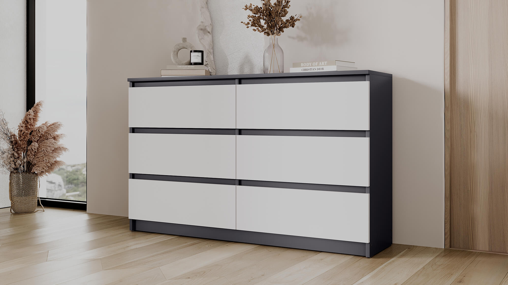 Комод ВЕГА 6Я Графит/Белый гладкий