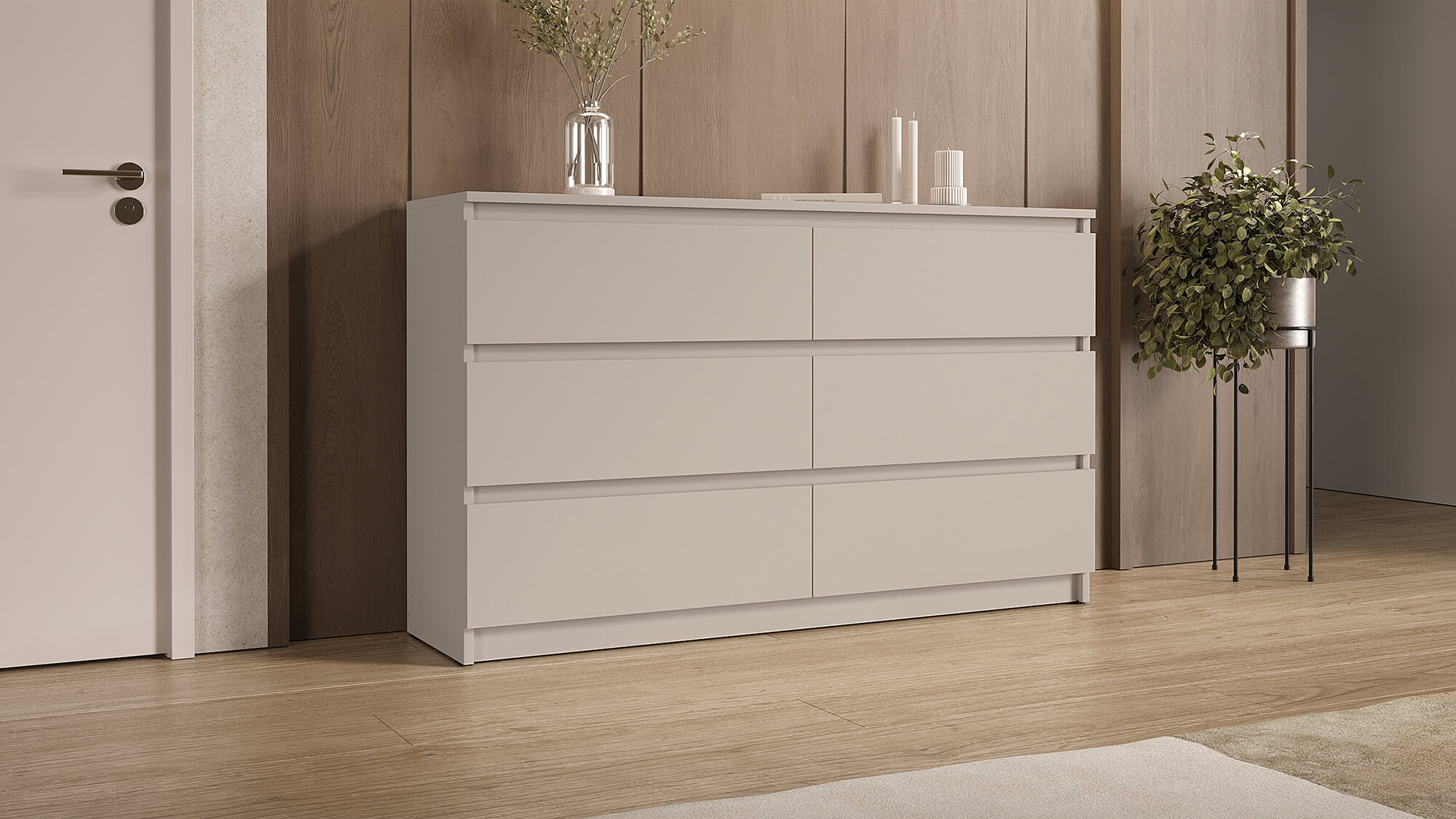 Благодаря лаконичному внешнему виду комод органично впишется в интерьер спальни, гостиной или прихожей. Прочные материалы и надёжная фурнитура гарантируют долгий срок службы, а чёткие линии и стильная цветовая гамма подчеркнут эстетику вашего дома.