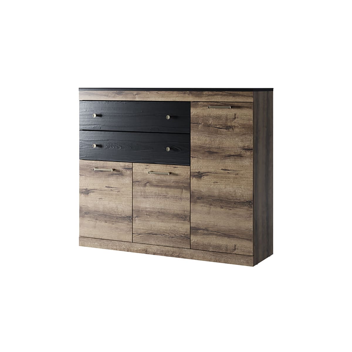 Тумба 3D2S JAGGER – прекрасное дополнение в интерьере спальни и гостиной. Выступает не только как оригинальная часть гарнитура, но и как самостоятельный предмет мебели. Тумба 3D2S имеет прямую конструкцию. Конструкция элемента представляет одно отделение с полками из ЛДСП за глухой дверью, одно отделение с полкой из ЛДСП за двумя глухими дверями, два выдвижных ящика (2S). Элемент может организовать хранение постельного белья, предметов одежды, полотенец, скатертей и салфеток, посуды и столовых предметов, а также других предметов быта.